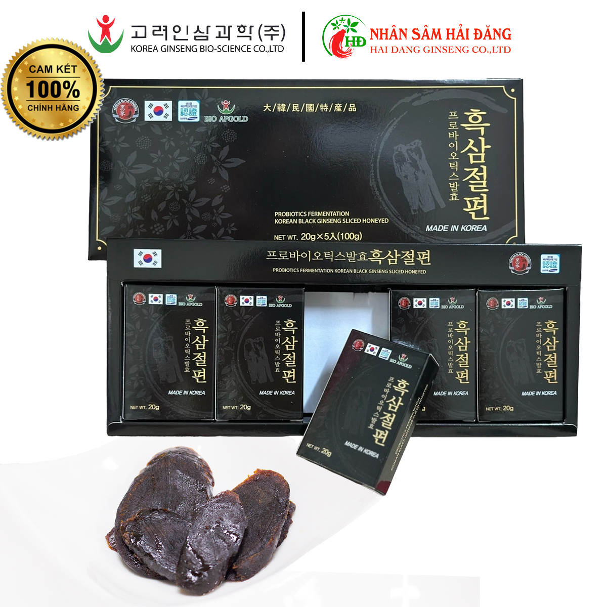 Quy Cách: 20g/hộp nhỏ * 5 hộp nhỏ/ hộp Xuất Xứ: Hàn Quốc THÀNH PHẦN: Hắc Sâm chiếm 55% , Siro Ngô, Probiotic. Công Dụng : Bổ bổ toàn diện, tặng cường hệ miễn