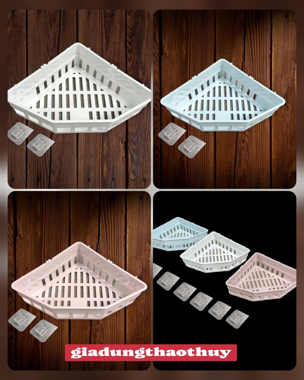 ️HÀNG CAO CẤP ) KỆ GÓC PHÒNG TẮM KỆ GÓC NHÀ BẾP DÁN TƯỜNG KHÔNG CẦN KHOAN VÍT TIỆN LỢI Nhà tắm và phòng bếp, phòng ngủ phòng làm việc, thường có nhiều đồ đạc, không gian lại hạn hẹp vì vậy sẽ khá bừa bộn nếu bạn không sắp xếp một cách hợp lý. Để giải quyết vấn đề trên, một kệ đựng đồ góc tường sẽ là giải pháp khá hữu hiệu cho nhà tắm hay góc bếp nhỏ xinh. PHƯƠNG PHƯƠNG STORE giới thiệu kệ tam giác tiện lợi.ĐA NĂNG không cần khoan ốc vít .kệ tam giác đã có giải phấp với miếng dán SIÊU DÍNH chịu lực tùy theo không gian BẠN có thể dùng nhiều chiếc kệ gó thùy ý PHƯƠNG PHƯƠNG STORE CÓ BÁN RA sản phẩm kệ tam giác với 3 MÀU khác nhau @ MÀU XANH KT 20X20X6,5 CM @ MÀU HỒNG KT 20X20X6,5 CM @ MÀU TRẮNG KT 20X20X6,5 CM