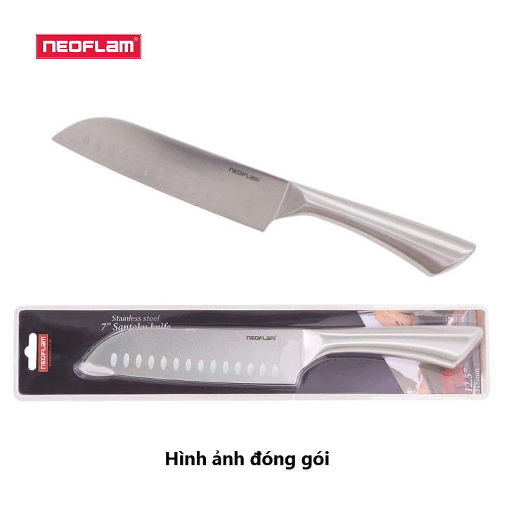 Bộ dao Neoflam gồm 3 dao: Dao chef, dao santoku 7' và dao gọt. Dao được làm từ thép chống gỉ hàm lượng các bon cao, sắc bén và sạch bóng, dễ dàng chế biến thực phẩm và làm sạch.