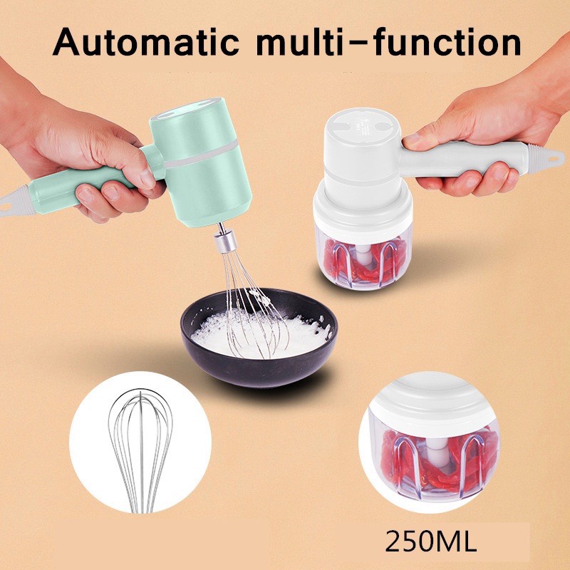Máy Đánh Trứng Cầm Tay, Máy Xay Mini, Xay Tỏi Ớt Rau Củ Quả Đa Năng 3 Trong 1 Tiện Lợi