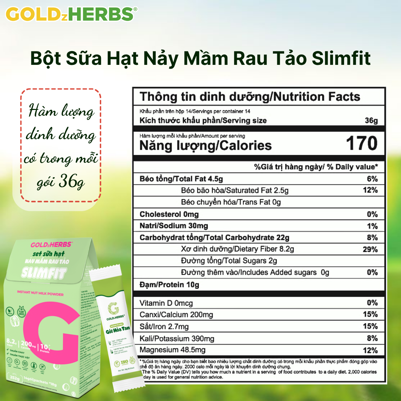 ✨Hàng chính hãng - Bột sữa hạt nảy mầm rau tảo GoldzHerbs Slimfit - 12 gói/ 252g/ 500g
