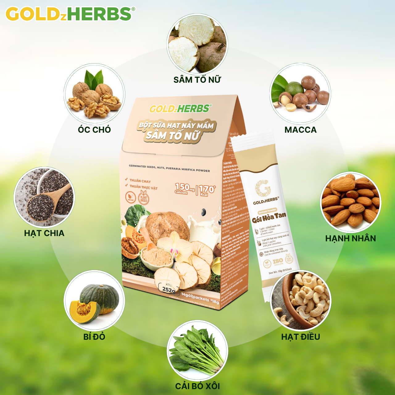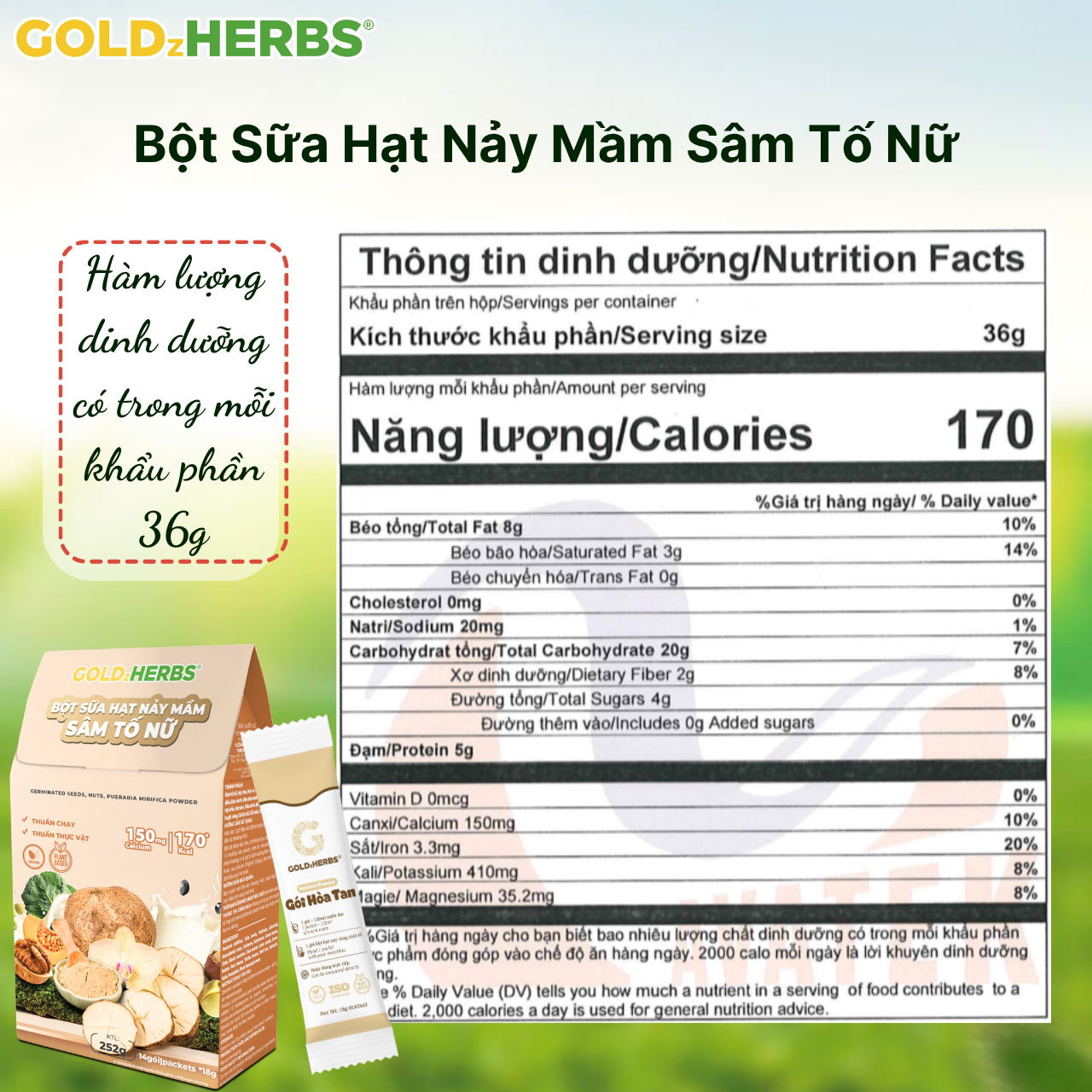 ✨Hàng chính hãng - Bột sữa hạt nảy mầm sâm tố nữ GoldzHerbs - 14 gói/ 500g