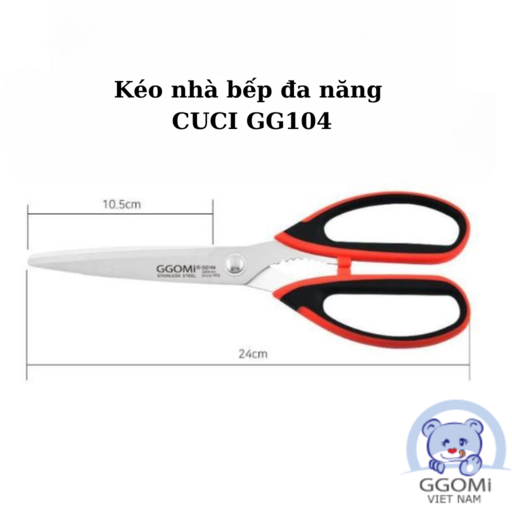 Kéo nhà bếp CUCI GG104 kích thước: 240 mm - Trọng lượng: 98g được làm từ vật liệu inox 420 cao cấp, sản phẩm không chỉ đẹp mắt, chống rỉ sét mà còn đảm bảo độ bền cao và giữ được độ sắc bén lâu dài, giúp bạn dễ dàng cắt các loại thực phẩm mà không gặp trở ngại. Sử dụng cắt thực phẩm, dùng trong nhà bếp, cắt giấy, dùng trong văn phòng, kẹp bóc hạ