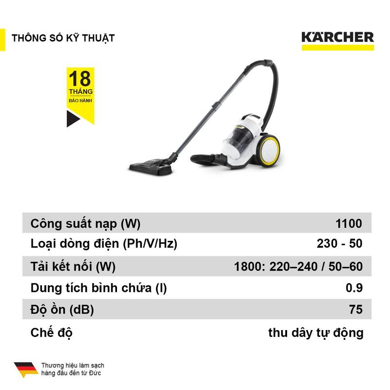 Máy hút bụi khô Kärcher VC 3 Plus - Lực hút mạnh và giảm tiếng ồn