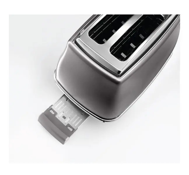 Sáu mức độ nâu có thể điều chỉnh Kẹp bánh mì nướng tích hợp Hai khe nướng bánh mì cực rộng Tự động định tâm bánh mì Đầu gắn bánh mì và ngăn đựng vụn