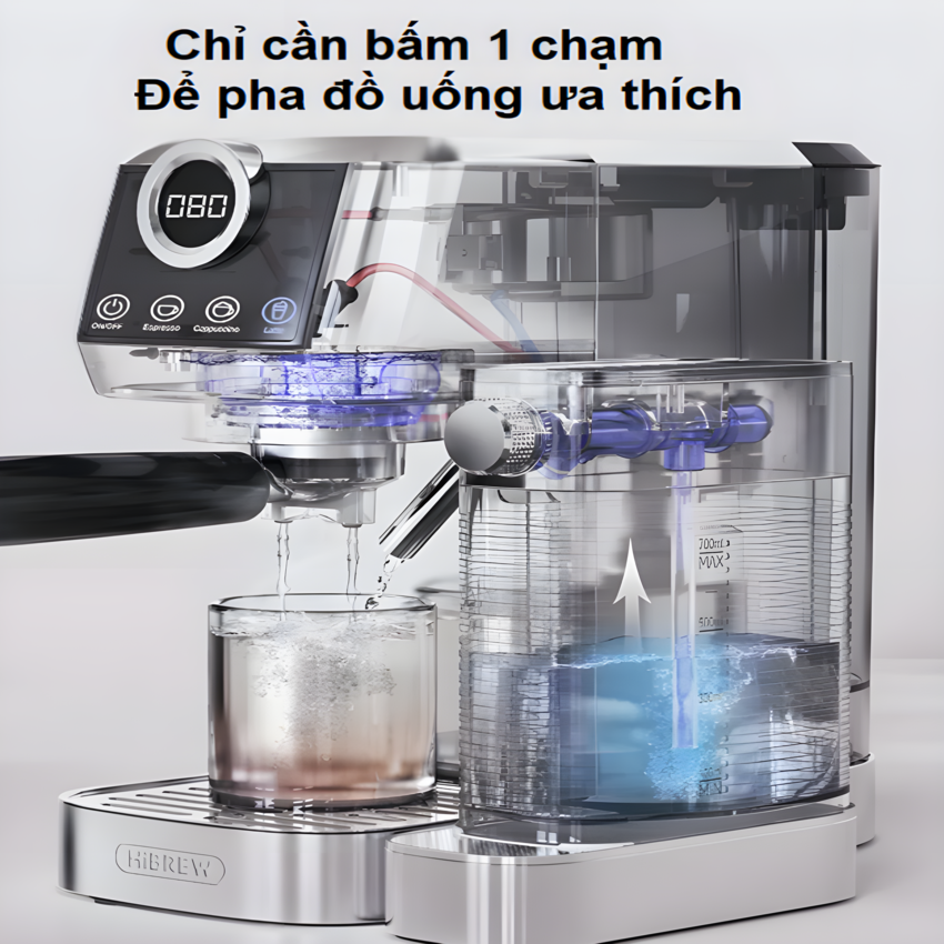 Máy pha cà phê Espresso bán tự động 3 trong 1 tự động pha Espresso, Latte, Cappuccino HiBREW H13A