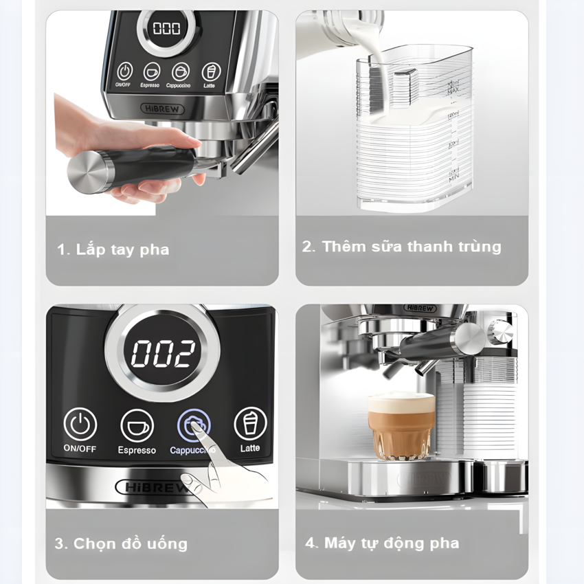 ✨HÀNG CHÍNH HÃNG - Máy pha cà phê Espresso bán tự động, 3 trong 1 tự động pha Espresso, Latte, Cappuccino. Thương hiệu Mỹ cao cấp HiBREW - H13A