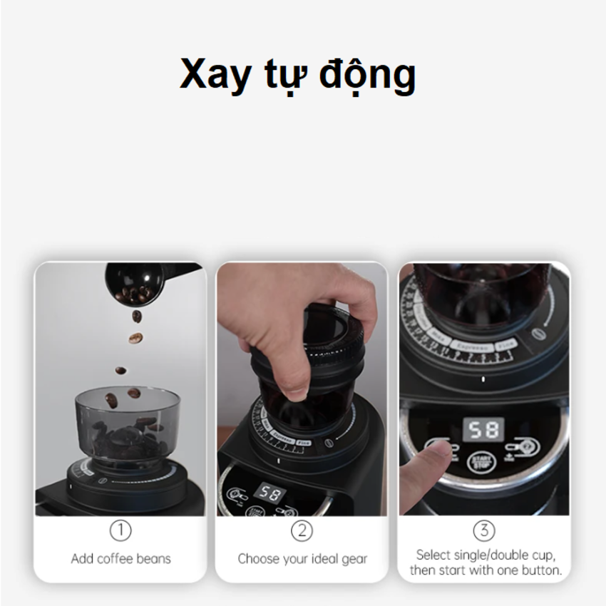 - Với lưỡi dao chất liệu thép không gỉ SS420 bền bỉ bền bỉ sở hữu 31 cấp độ xay, từ dạng thô đến dạng mịn. Chính vì thế nó có thể đáp ứng tối thiểu độ mịn cho 1 ly cà phê espresso chuẩn Ý.