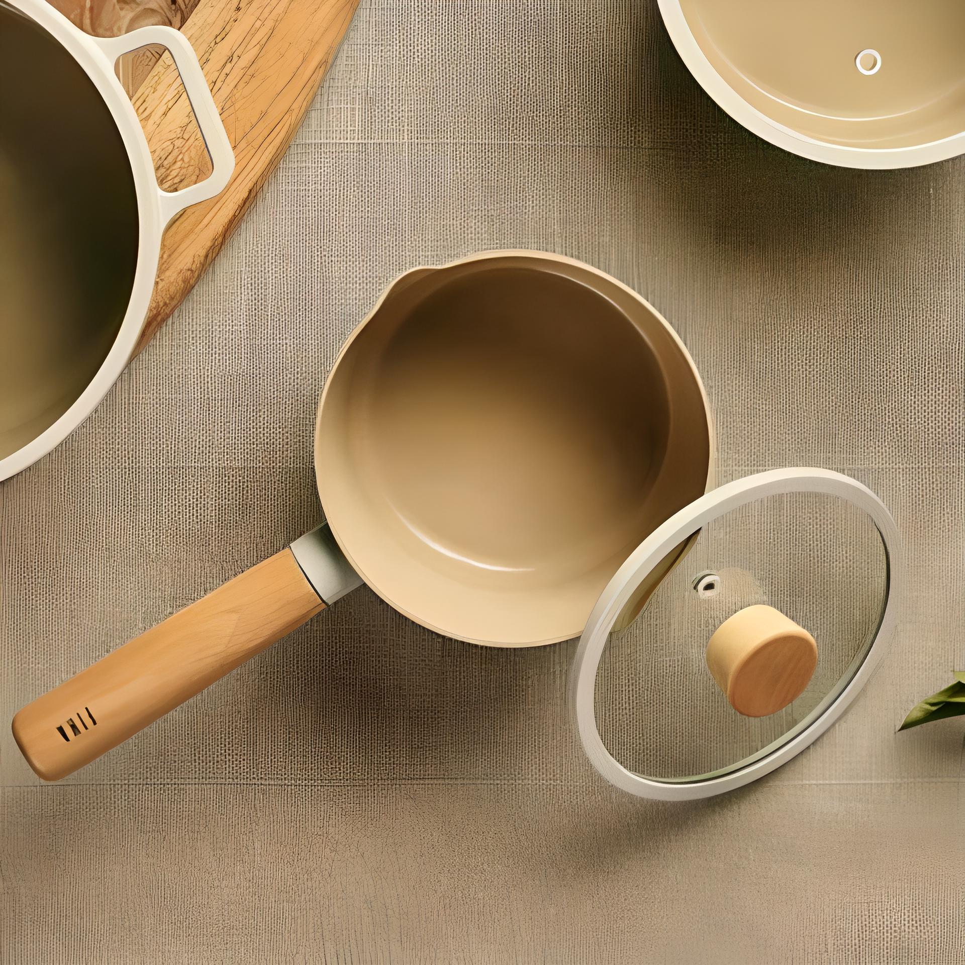 Quánh nhỏ 16 cm có miệng rót,  lớp vỏ gốm chống dính màu trắng, trong lòng tráng gốm màu vàng nhạt. Màu sắc sang trọng, siêu chống dính Xtrema. Dòng sản phẩm cao cấp nhập khẩu từ Hàn Quốc. Thích hợp để làm nóng sữa, quấy cháo bột, nấu mì, nấu các món ăn ít thực phẩm.