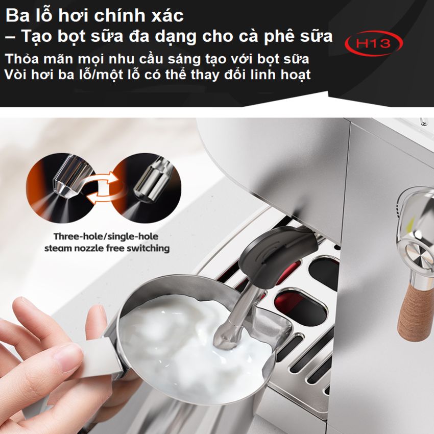 Máy pha cà phê Cappuccino, Ristretto, Espresso, Latte chuyên nghiệp HiBREW H13 Tiktok
