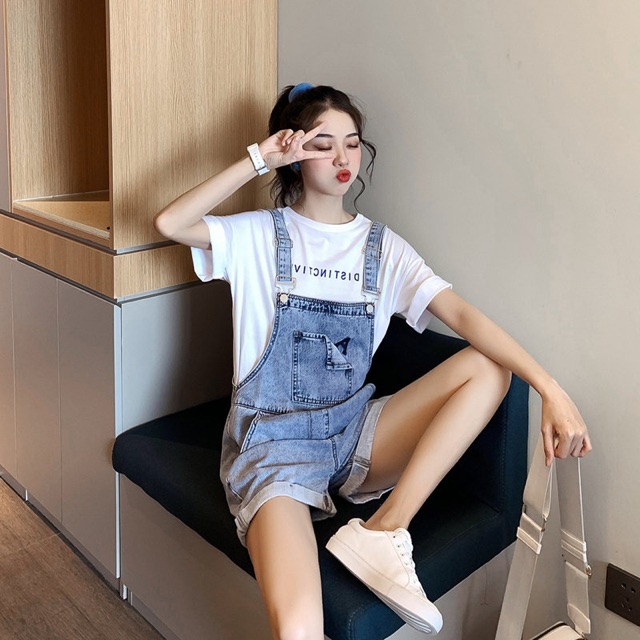 - [HÀNG XỊN_CÓ TẶNG QUÀ] Quần yếm jean ngắn nữ YS13 vải dày, phong cách Hàn Quốc