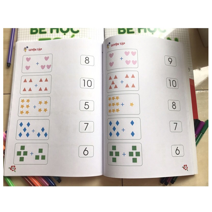 2. Bé học toán: tập hợp những bài toán bổ ích giúp bé tăng khả năng nhận thức các con số, tính toán, nhận dạng hình học. Bé vừa học vừa chơi giúp bé nhận thức sớm về toán học ✿ Nội dung cuốn sách gồm 3 phần: