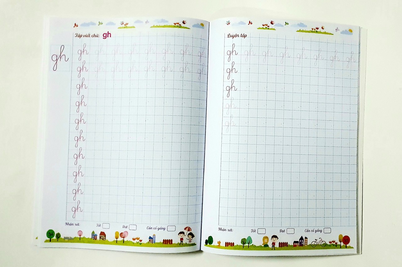 • Quyển 2: Tập viết chữ cái và chữ ghép theo mẫu chữ có sẵn.