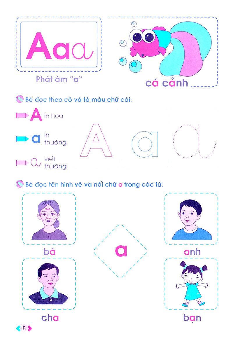 Mỗi tập nhấn mạnh vào một kỹ năng cơ bản: đọc - viết, làm quen chữ cái, tô nét cơ bản... Ngoài ra, sách còn kèm theo hình vẽ minh họa màu sinh động, giúp các em hứng thú hơn trong học tập.