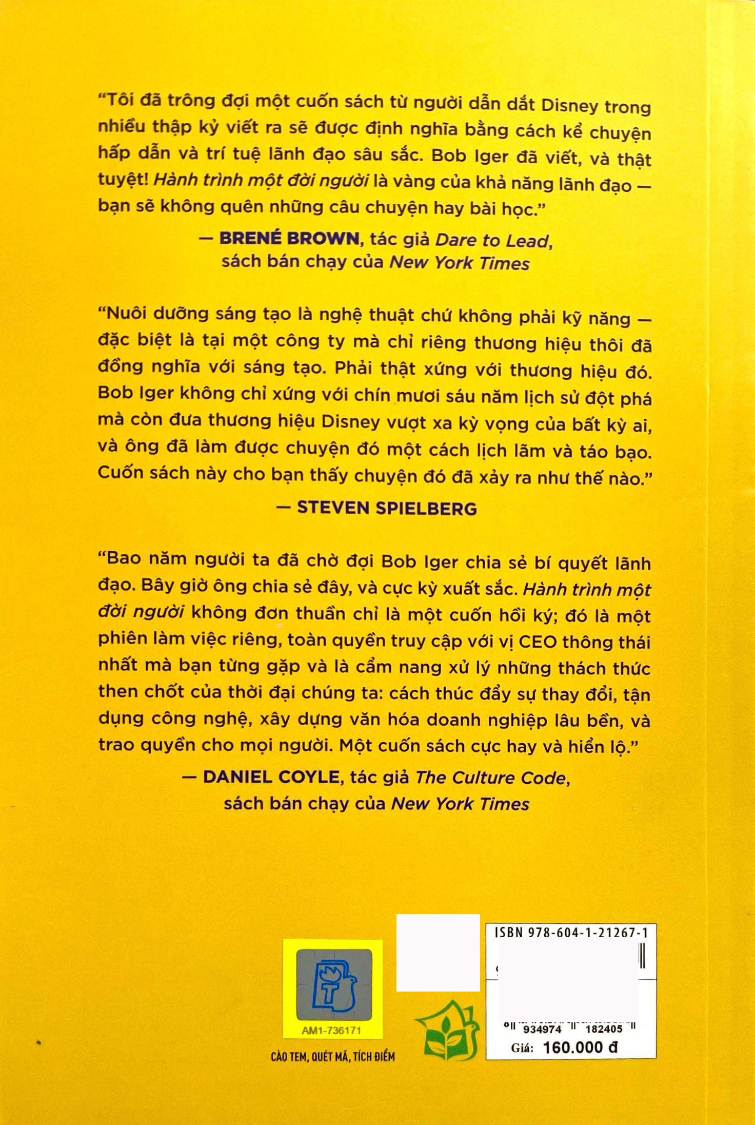 Trong Hành trình một đời người, Robert Iger chia sẻ những bài học đúc kết được khi điều hành và lãnh đạo hơn 220.000 nhân viên của hãng, và khám phá những phẩm chất lãnh đạo đích thực.
