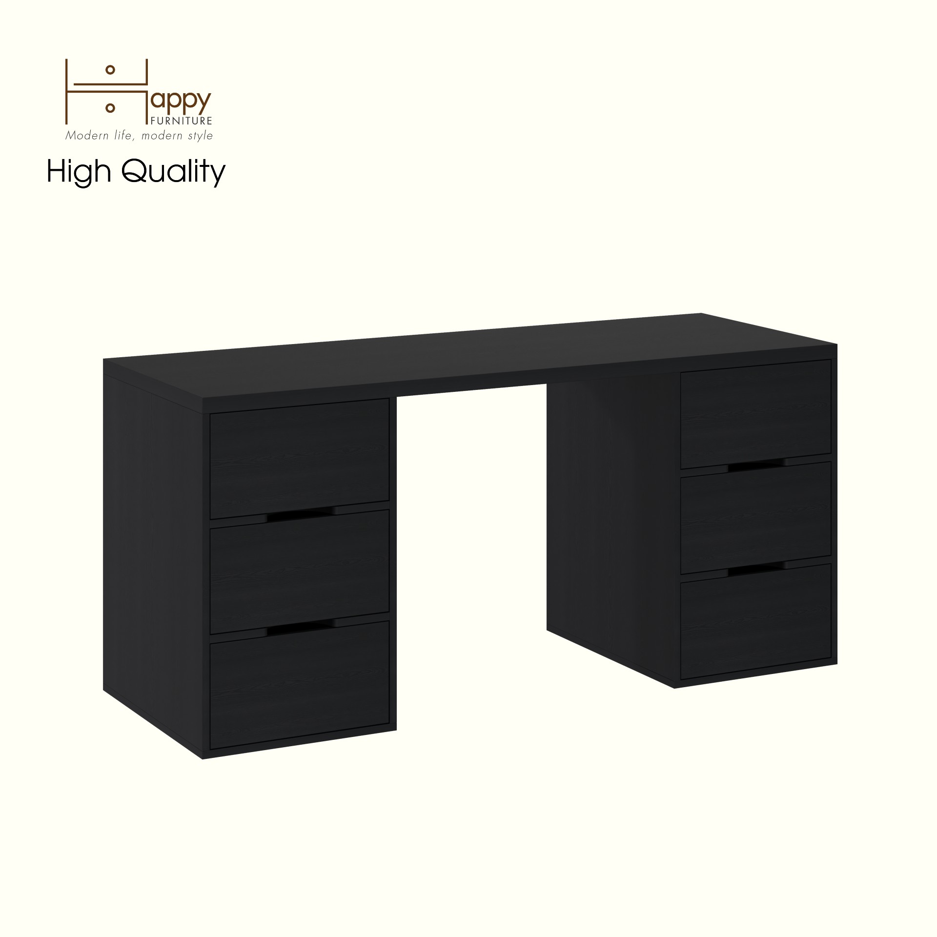 ✨HAPPY FURNITURE ,Bàn làm việc 6 ngăn kéo - LAYLA , BAN_164 , 160cm x 59cm x 75cm DxRxC