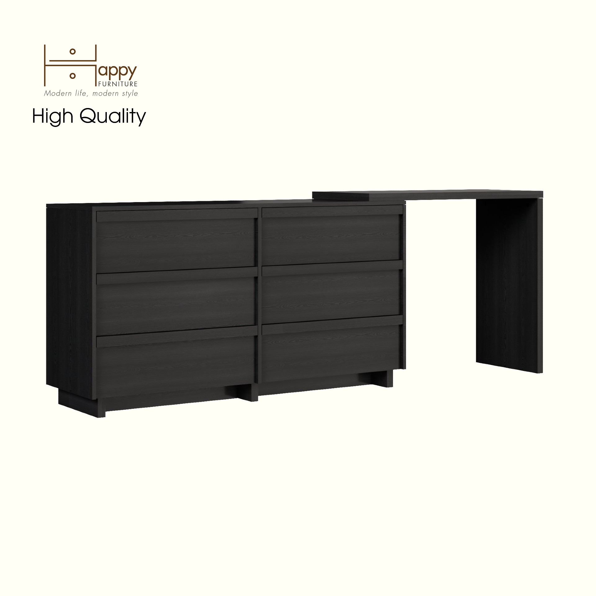 ✨HAPPY FURNITURE , Tủ lưu trữ 6 ngăn kéo kết hợp bàn - VENNI , BAN_114 , 230cm x 45cm x 85cm DxRxC