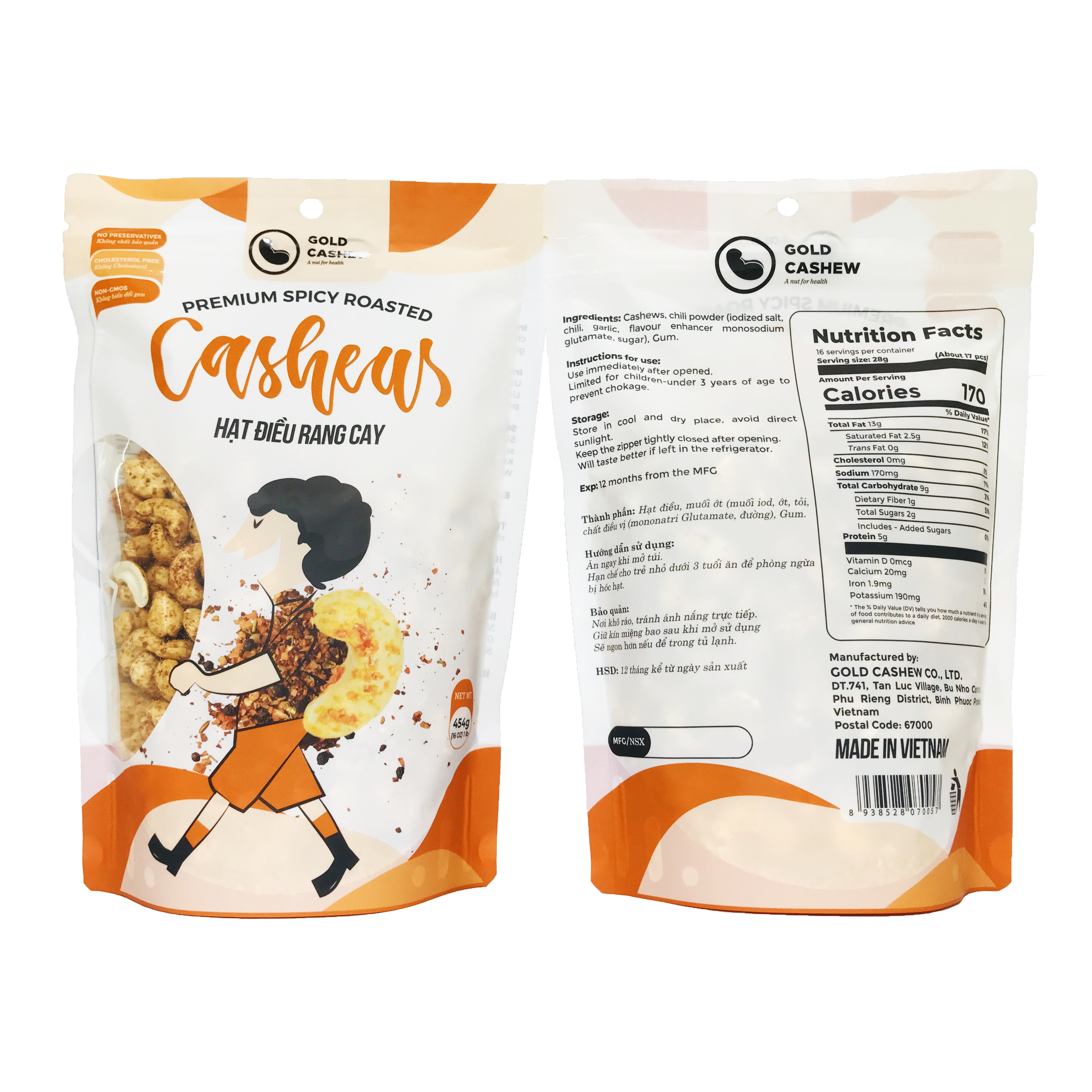 - Thông tin chung Túi 454g (16 oz) là loại túi zipper có đường zip bền, chịu được áp lực cao nhằm đảm bảo giữ mùi vị của sản phẩm, phù hợp với các tiêu chuẩn xuất khẩu. Thích hợp sử dụng làm quà tặng người thân. Bao bì đóng gói: sử dụng bao bì Nhật Bản tiêu chuẩn Quốc tế của Hiệp Hội Bán Lẻ Anh Quốc – BRC Food, an toàn cho sức khỏe của người tiêu dùng, HSD: 12 tháng kể từ ngày sản xuất. Hướng dẫn sử dụng: Dùng trực tiếp sau khi mở túi, thích hợp khi dùng chung với các loại thức uống giải khát. Hạn chế cho trẻ nhỏ dưới 3 tuổi sử dụng để phòng ngừa hóc.