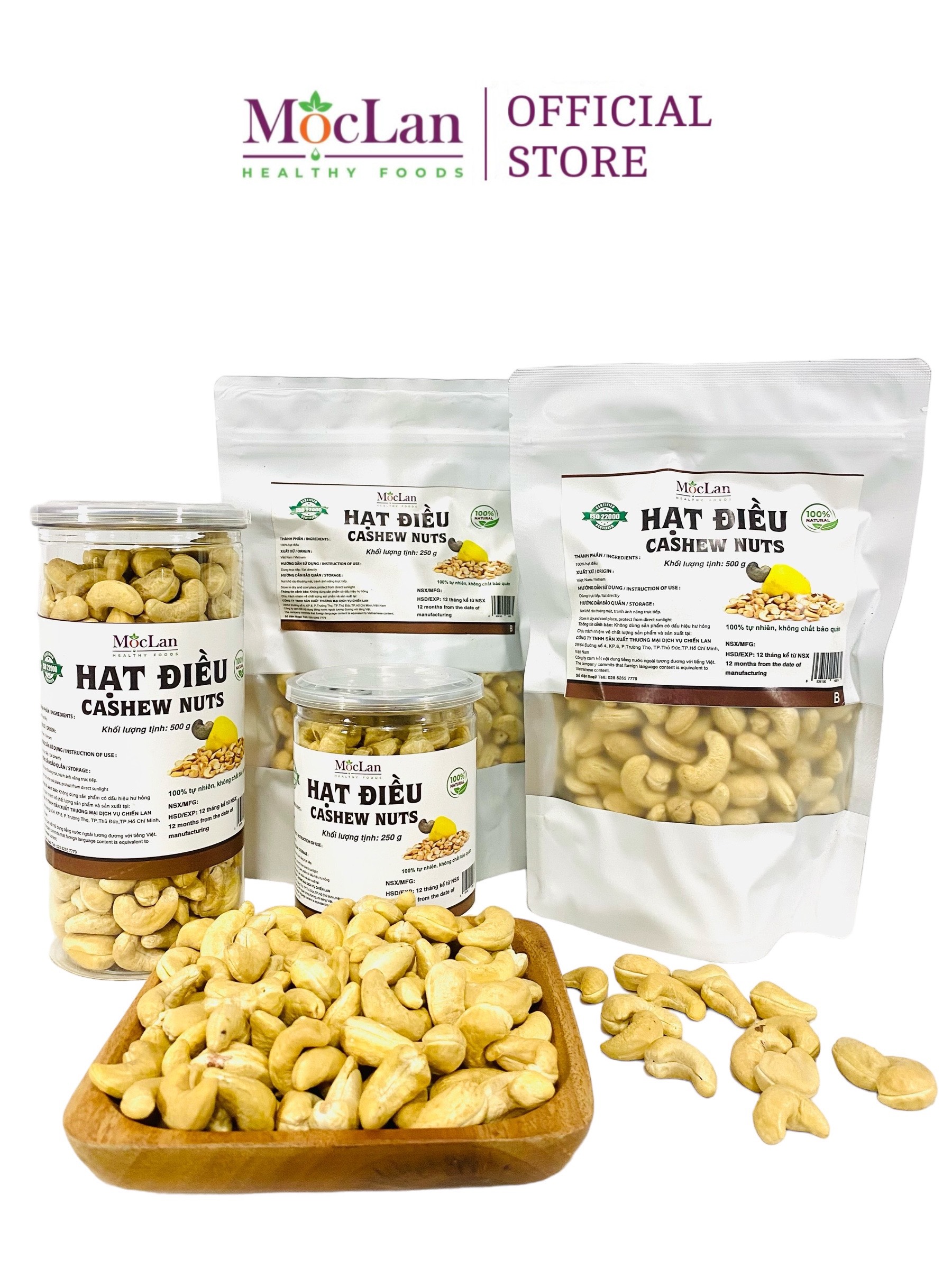 Hạt điều Là loại hạt có giá trị dinh dưỡng cao, được người dùng tin tưởng. Trong hạt điều có chứa: Protein cho hoạt động thường ngày, lipid đơn không béo. Và chứa một số chất khoáng quang trọng mà cơ thể rất cần. Phophos cần cho sự phát triển, Magie tham gia vào nhiều chu trình chuyển hóa, trao đổi chất. Với kali giữ vai trò quan trọng trong các quá trình chuyển hóa, tham gia hệ thống đệm điều hòa pH của tế bào. Và sắt đảm nhiệm vai trò ngăn ngừa thiếu máu . THÔNG TIN SẢN PHẨM HẠT ĐIỀU MộcLan HEALTHY FOODS
