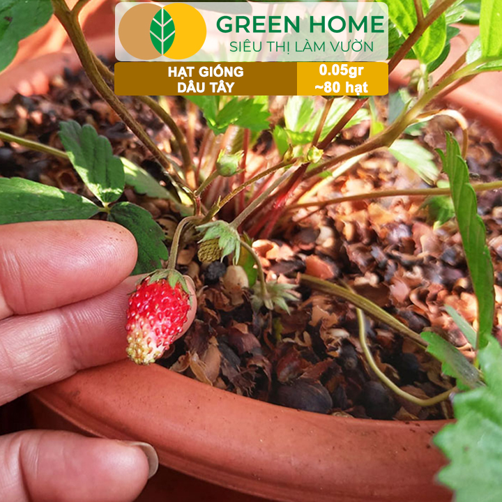 Hạt Giống Dâu Tây Đỏ Greenhome, Gói 0,05gr, Chịu Nhiệt, Quả To, Dễ Trồng, Năng Suất Cao T17