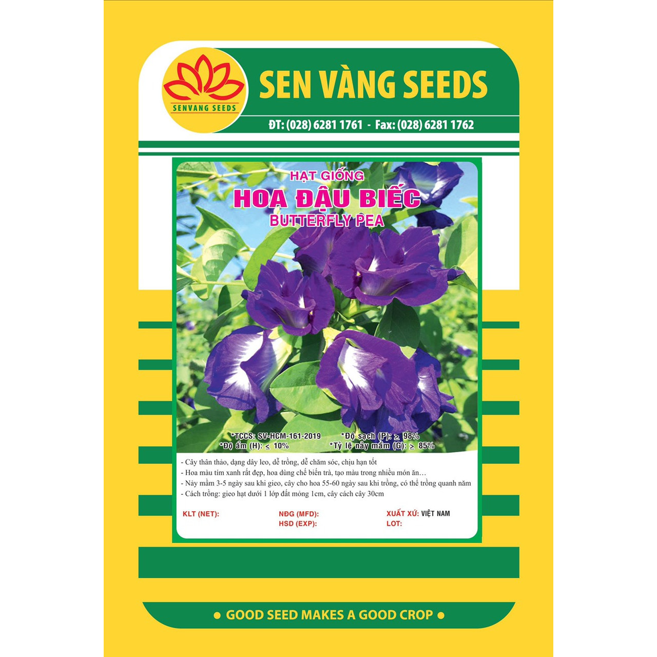 - Đặc tính giống: Hoa đậu biếc - Giống kháng bệnh tốt, cây thân thảo, dạng leo,dễ trồng, dễ chăm sóc và chịu hạn tốt. Khả năng phân nhánh mạnh nên cho năng suất cao và thời gian thu hoạch kéo dài. Hoa màu tím xanh rất đẹp, hoa dùng để chế biến trà, tạo màu trong món ăn