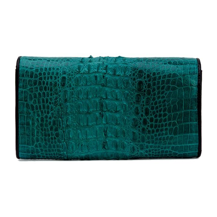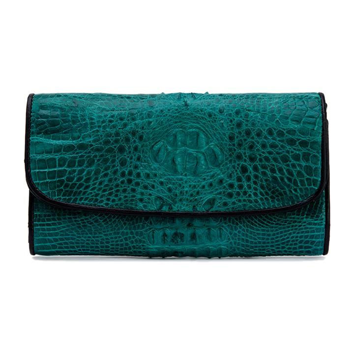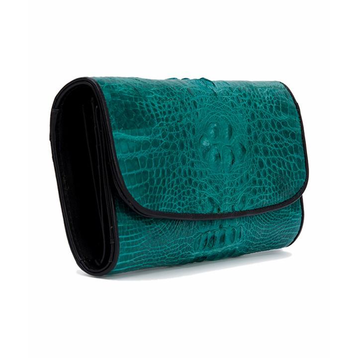 - Tên sản phẩm: HP3291 - Ví nữ Huy Hoàng da cá sấu 3 gấp nguyên con màu xanh lá