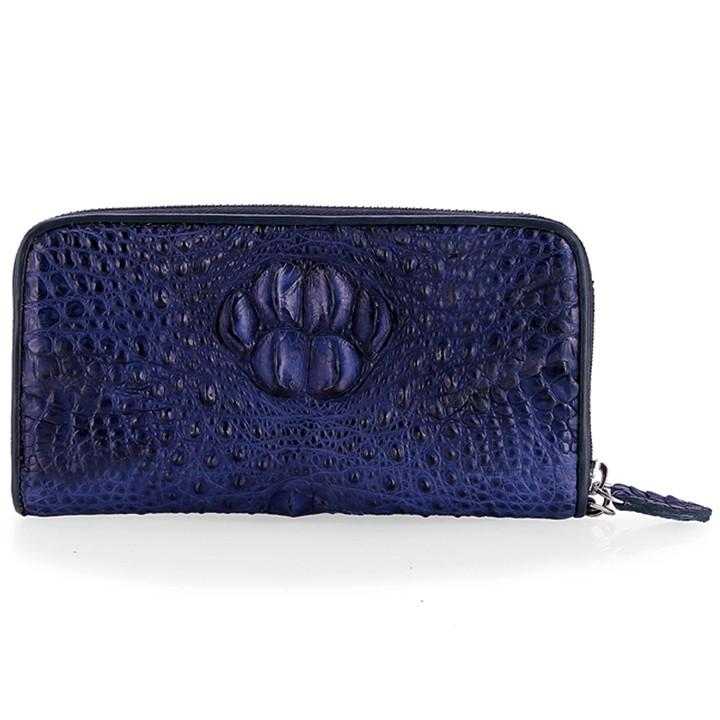 ✨HC3717 - Ví nữ Huy Hoàng da cá sấu 1 khóa nguyên con màu xanh đậm