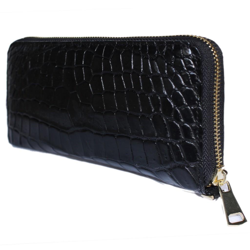 ✨HC3742 - Ví nữ da cá sấu Huy Hoàng 1 khóa nguyên con bụng màu đen