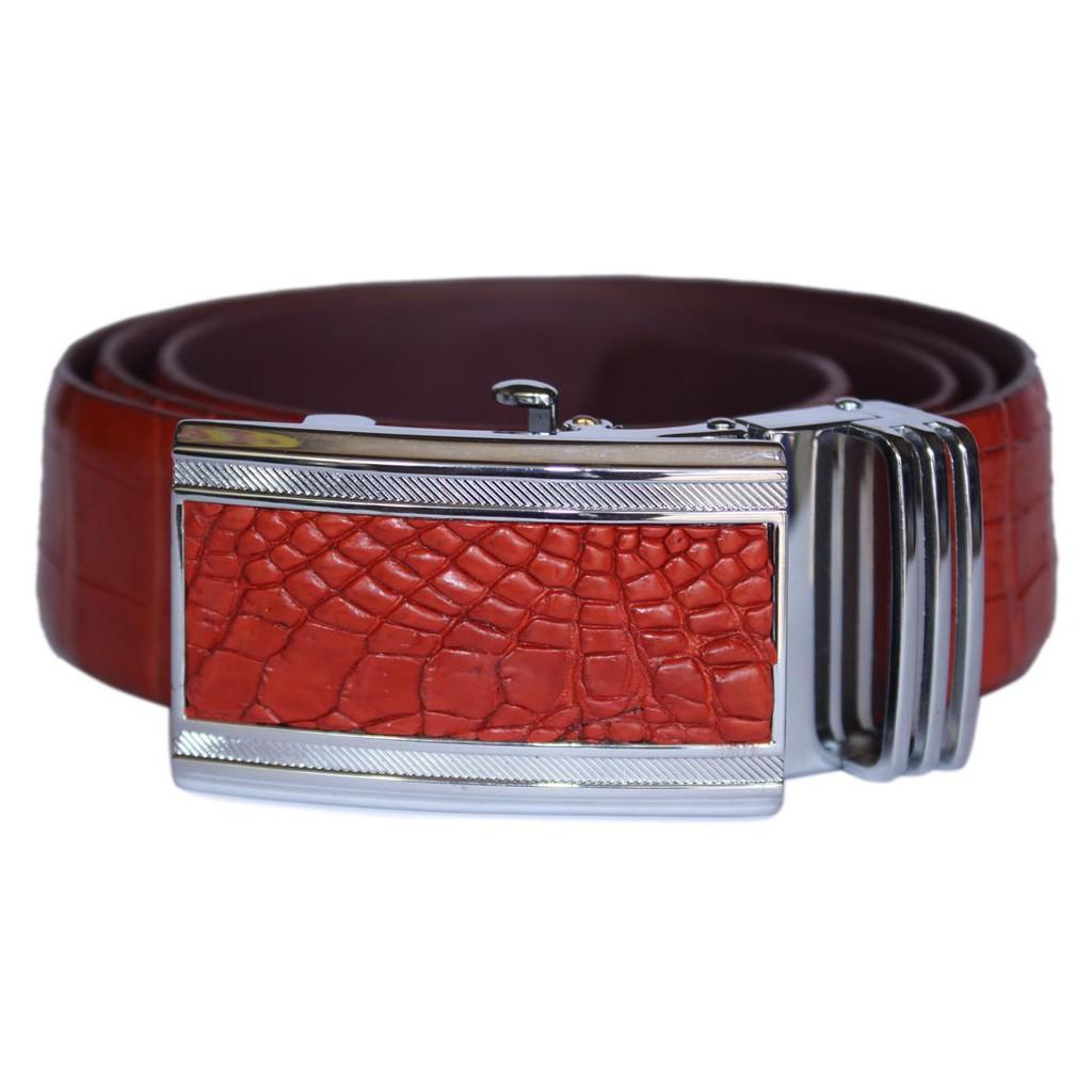 ✨HC4828 - Dây nịt nam Huy Hoàng da cá sấu gai bụng 4P màu đỏ