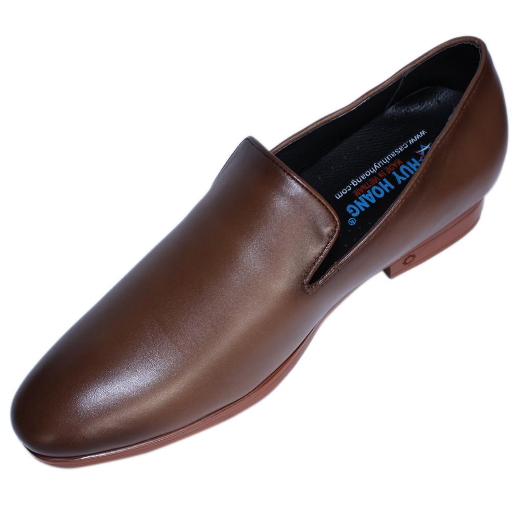 Giày tăng chiều cao Huy Hoàng da bò màu nâu 7715