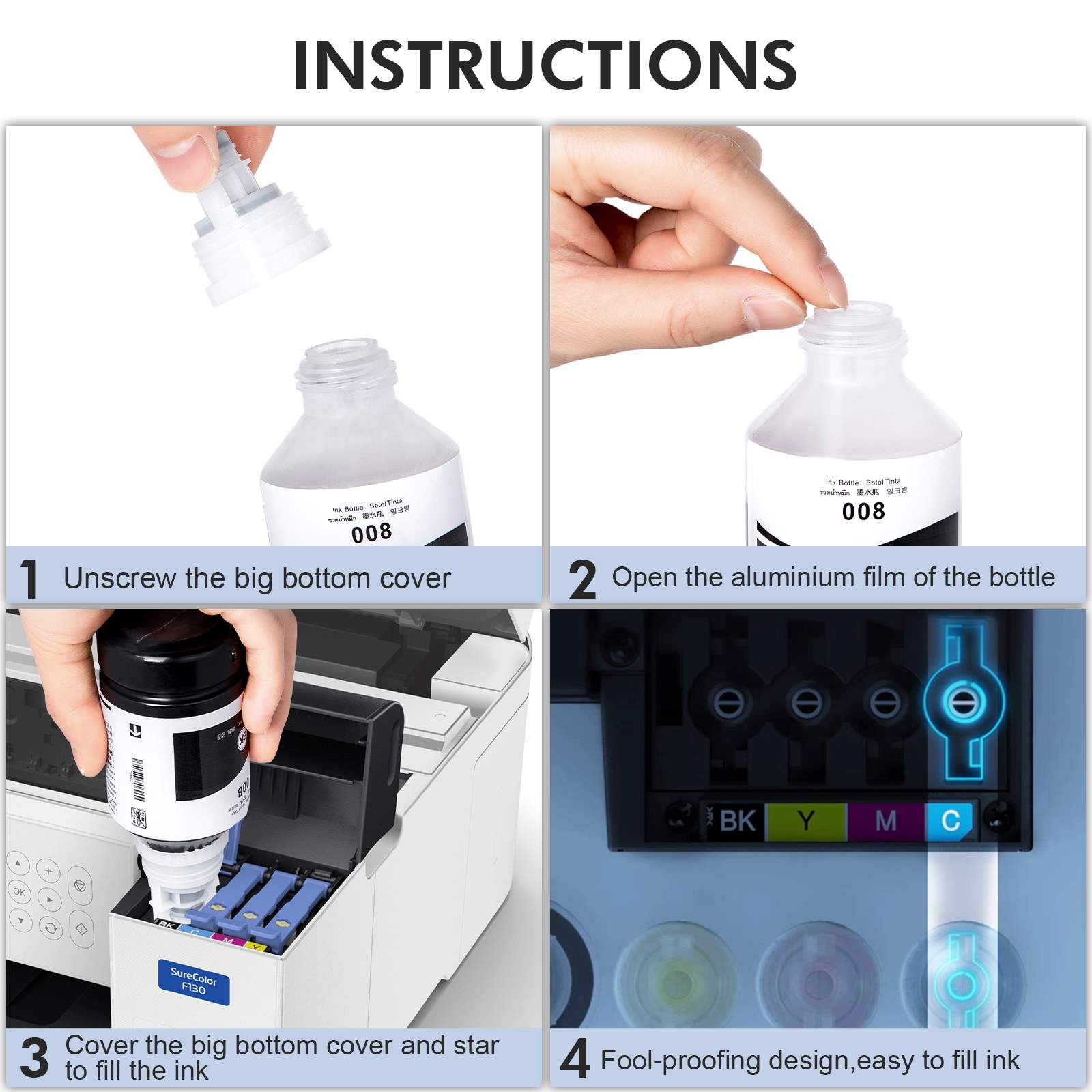 Mực in tương thích pigment màu xanh (C) Epson 008 đa năng dành cho EPN M15140 – L15160 – L15150 - hàng nhập khẩu Dung tích: 70 ml/ chai. Có thể in lên đến 6000 trang Có