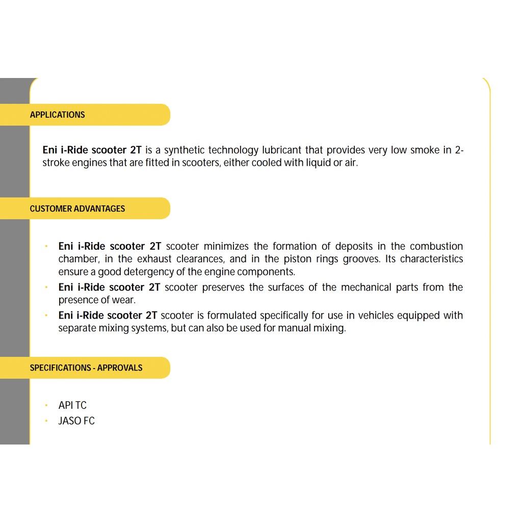 ✨(HCM) Nhớt 2 thì không khói, eni 2T SML, chuẩn chất lượng châu Âu