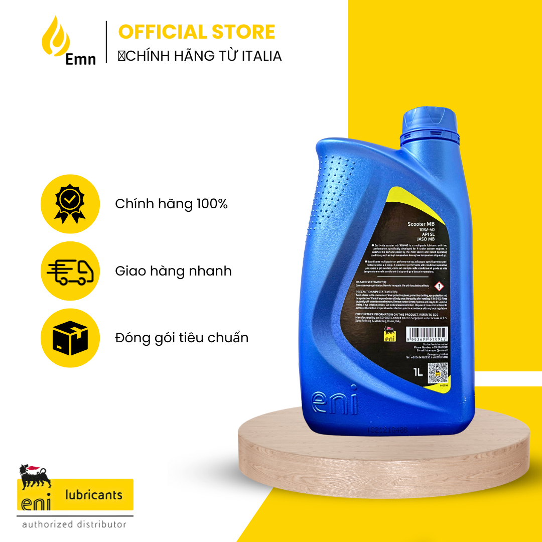 ENI I-RIDE SCOOTER MB 10W-40 là loại dầu nhớt chất lượng cao chuyên dụng cho xe tay ga (Honda, Yamaha, Piaggio) Tính chất . Cấp nhớt: JASO MB | API SL . Phân loại: Nhớt tổng hợp (Synthetic Technology) Đặc tính . Các thành phần được cẩn thận lựa chọn để góp phần tiết kiệm nhiên liệu hơn trong các ứng dụng hộp số tự động (xe tay ga). . Khởi động máy nhanh, mà không mất nhiều thời gian chờ . Đặc tính mát máy và chạy êm mượt, tiết kiệm nhiên liệu . Thay nhớt sau 2,500-3,000km hành trình Ứng dụng