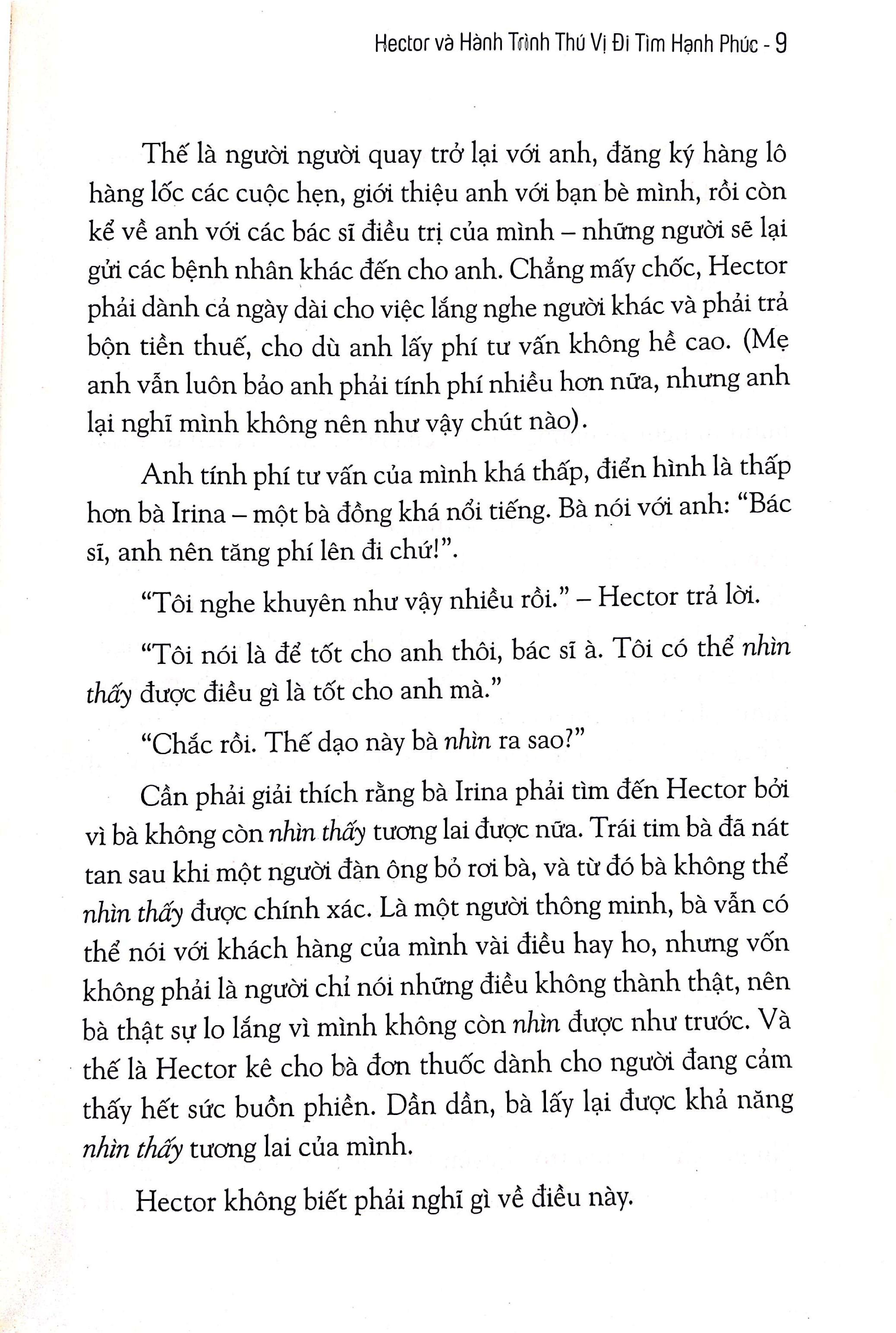 Hạnh phúc có hình hài như thế nào và vì sao có một số người dễ dàng có được hạnh phúc còn người khác lại phải vật vã khó khăn? Có thể bạn sẽ tìm được câu trả lời của mình qua hành trình tìm hạnh phúc của Hector, một hành trình thú vị, đầy tính nhân văn mà ai cũng nên bắt đầu để có câu trả lời thỏa đáng về hạnh phúc cho chính mình.