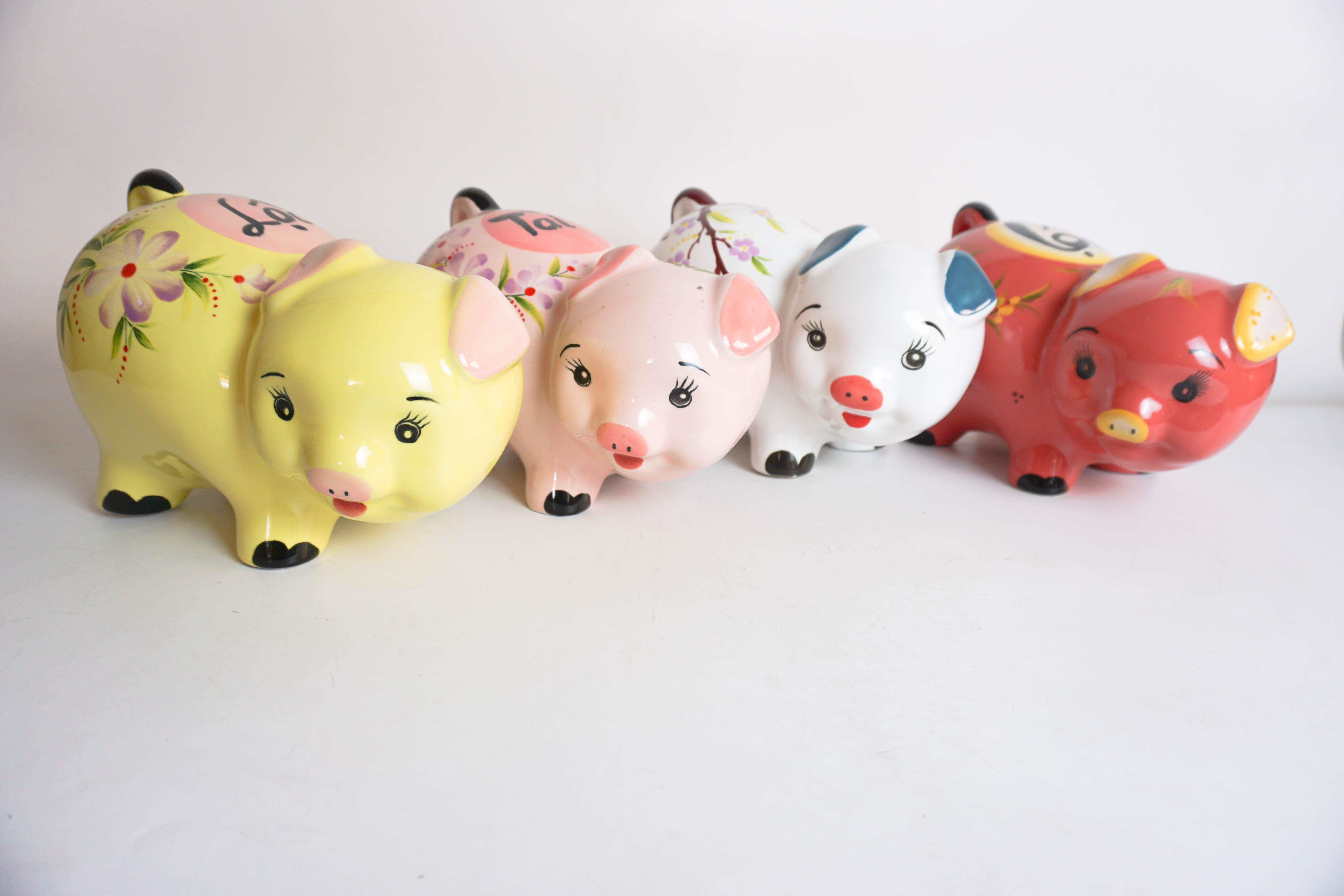 Heo để tiền 04 được làm từ chất liệu sứ cao cấp, ưu điểm có bề mặt mịn màng và được trang trí bắt mắt cho dịp Tết 2024.