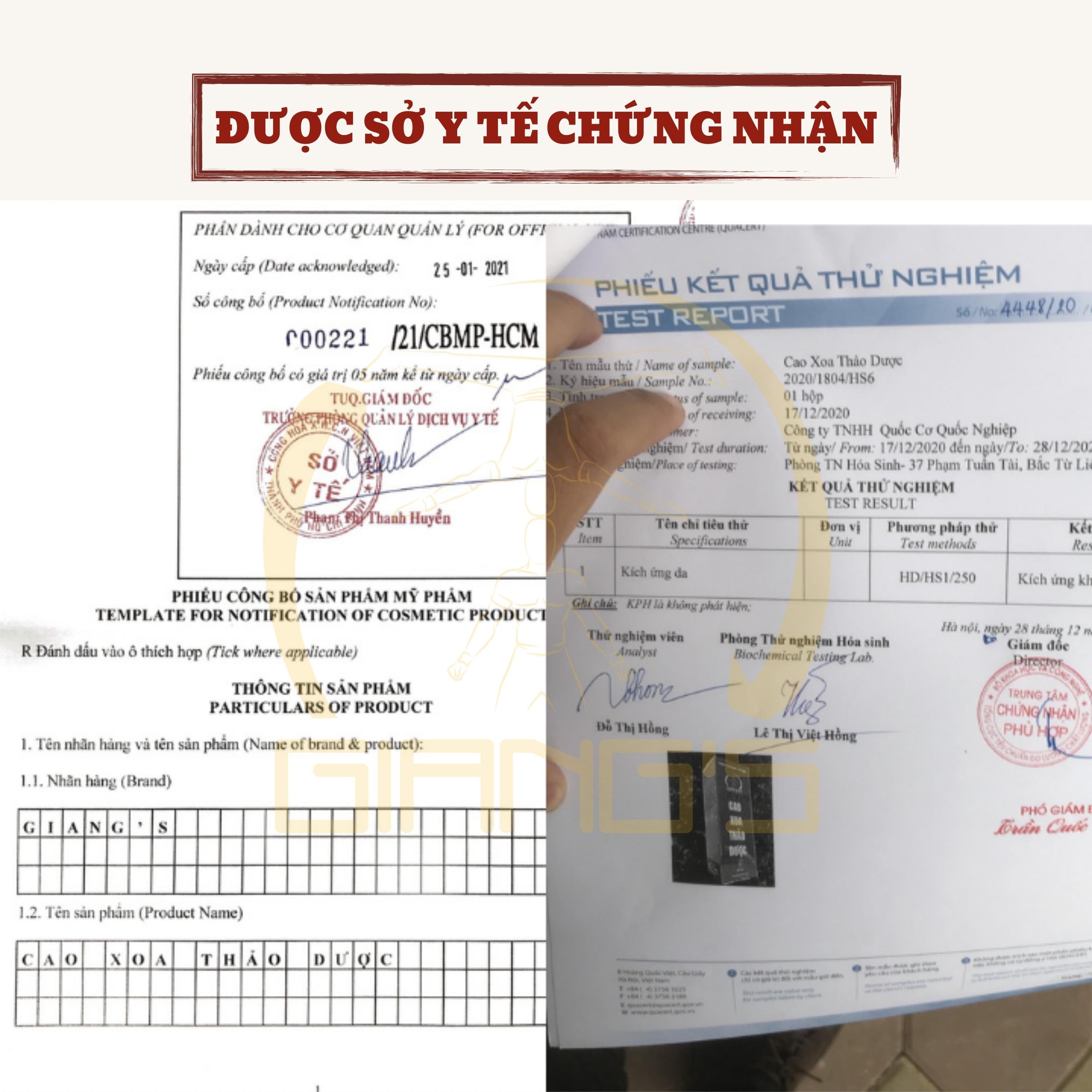 CAO XOA BÓP THẢO DƯỢC GIANG'S GIẢM ĐAU CỰC MẠNH Công thức gia truyền qua nhiều thế hệ của gia đình Quốc Cơ - Quốc Nghiệp. Với khả năng tăng cường thêm độ nóng lạnh,