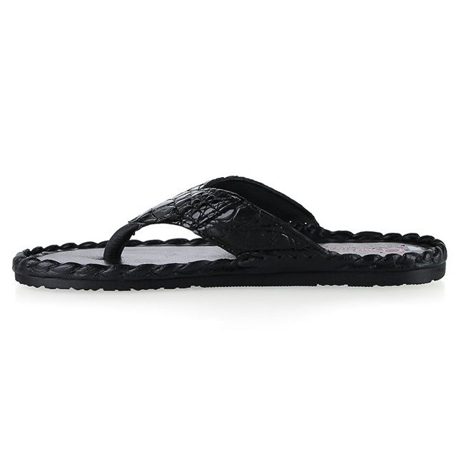 Dép HM thủ công màu đen vân cá sấu