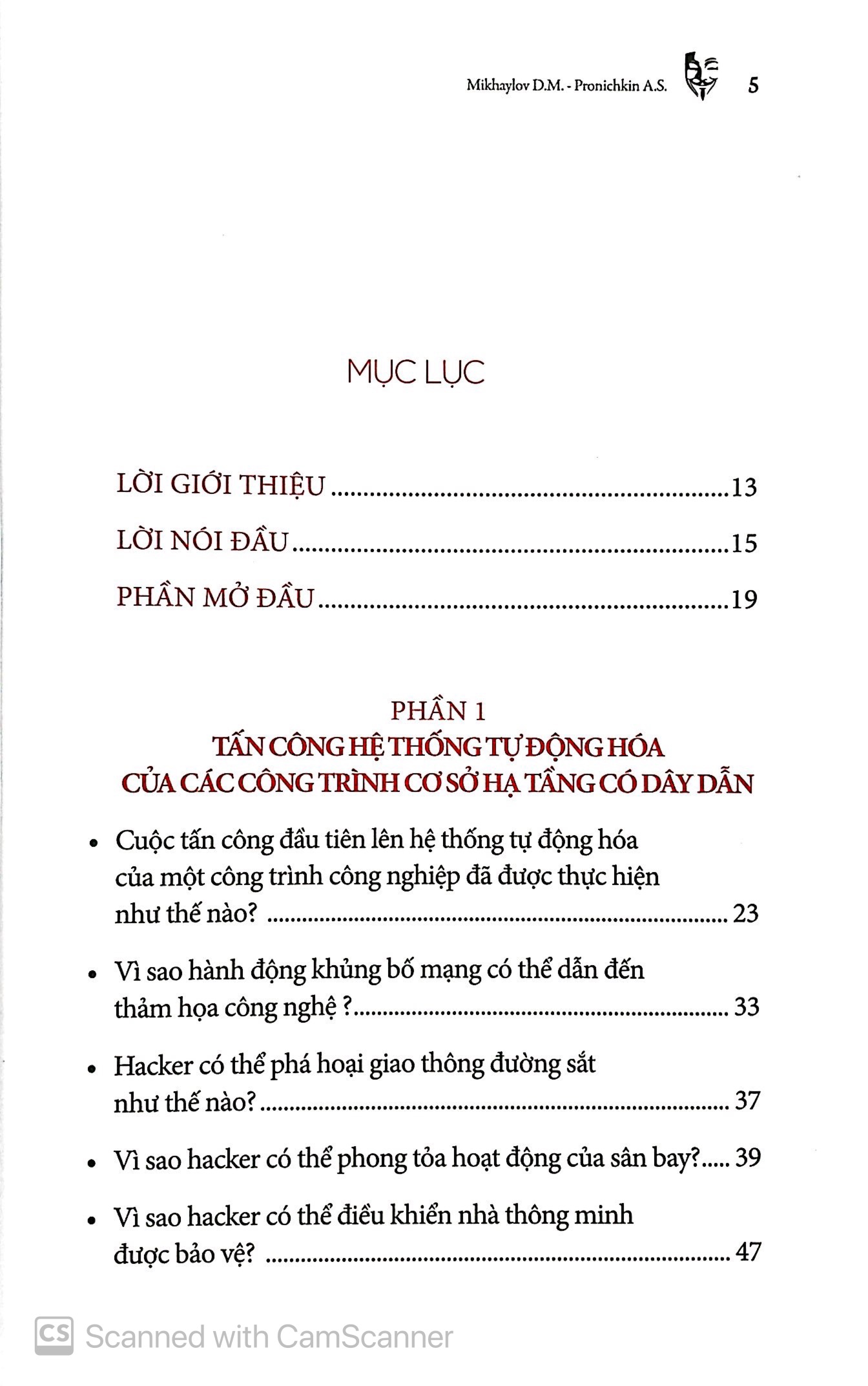 Gần đây người ta thường nói đến hacker (hiểu theo nghĩa tiêu cực là tin tặc), đến sự nguy hiểm của những cuộc tấn công mạng. Nhưng nhiều người trong số chúng ta vẫn cho rằng, mối đe dọa này chẳng mấy liên quan đến thường dân. Thực tế lại không như vậy. Hầu như tất cả các công trình công nghiệp hiện nay đều đã được tự động hóa, ứng dụng công nghệ thông tin (CNTT), trong đó có những công trình đặc biệt quan trọng đối với một quốc gia như chế biến dầu khí, nhà máy điện, cảng hàng không. Cuốn sách này đề cập đến một vấn đề quan trọng: an ninh của các công trình công nghiệp tối quan trọng, và cũng là an ninh của quốc gia nói chung. Việc tự động hóa, ứng dụng CNTT trong sản xuất giúp nâng cao độ tin cậy, tăng năng suất vì loại bỏ được lỗi do con người gây ra. Thế nhưng, đây lại chính là mục tiêu tấn công của hacker. Trên thế giới hiện nay đã có nhiều trường hợp xảy ra, chỉ một nhóm hacker cũng có thể làm đình trệ cả một hệ thống lớn. Ví dụ điển hình là cuộc tấn công bằng mã độc vào Cụm cảng Hàng không Việt Nam tại Nội Bài và Tân Sơn Nhất vào cuối tháng 7/2016 đã gây ngưng trệ hoạt động tại các sân bay, đồng thời một lượng dữ liệu lớn của khách hàng Vietnam Airlines bị đánh cắp. Chưa dừng ở đó, vụ mất tiền từ tài khoản của khách hàng tại Vietcombank cũng cho thấy có bàn tay của hacker chuyên nghiệp. Sẽ ra sao nếu như đứng sau những cuộc tấn công như vậy lại là bọn khủng bố, hay tệ hơn là kẻ thù tiềm năng, và thậm chí cả một quốc gia thù địch với tiềm lực công nghệ lẫn tài chính mạnh hơn rất nhiều, nghĩa là khả năng đạt mục tiêu cũng lớn hơn và hậu quả sẽ thảm khốc hơn. Chính vì vậy, sự ra mắt của cuốn sách "Hiểm họa hacker: Hiểu biết và phòng chống" là rất đúng lúc và cần thiết. Tác giả của cuốn sách này là một nhà khoa học Nga - chuyên gia về an ninh thông tin. Và chúng ta đều biết rằng an ninh thông tin của Nga là một trong những trường phái mạnh hàng đầu thế giới. Cuốn sách rất thiết thực cho cán bộ và đại diện các cơ quan an ninh, nó cũng cần thiết cho lãnh đạo các công trình tối quan trọng để nhận thức rõ tính cấp thiết của vấn đề an ninh thông tin. Hơn nữa, cuốn sách còn rất bổ ích cho các doanh nhân, chuyên viên CNTT, và cho cả những người quan tâm đến CNTT và an ninh mạng.