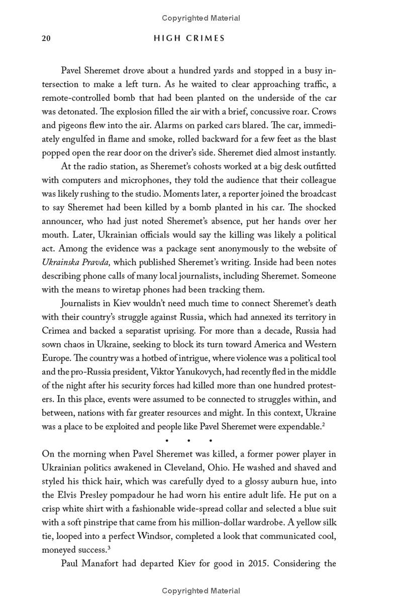 High Crimes opens with Nancy Pelosi deciding the House should take up impeachment, then, in part one, leaps back to explain what Ukraine was really all about: not just Joe Biden and election interference, but a money grab and oil. In the second part, the authors recount key meetings throughout the run up to the impeachment hearings, including many of the heated confrontations between the Trump administration and House Democrats. And the third part takes readers behind the scenes of those hearings, showing why certain things happened the way they did for reasons that never came up in public.