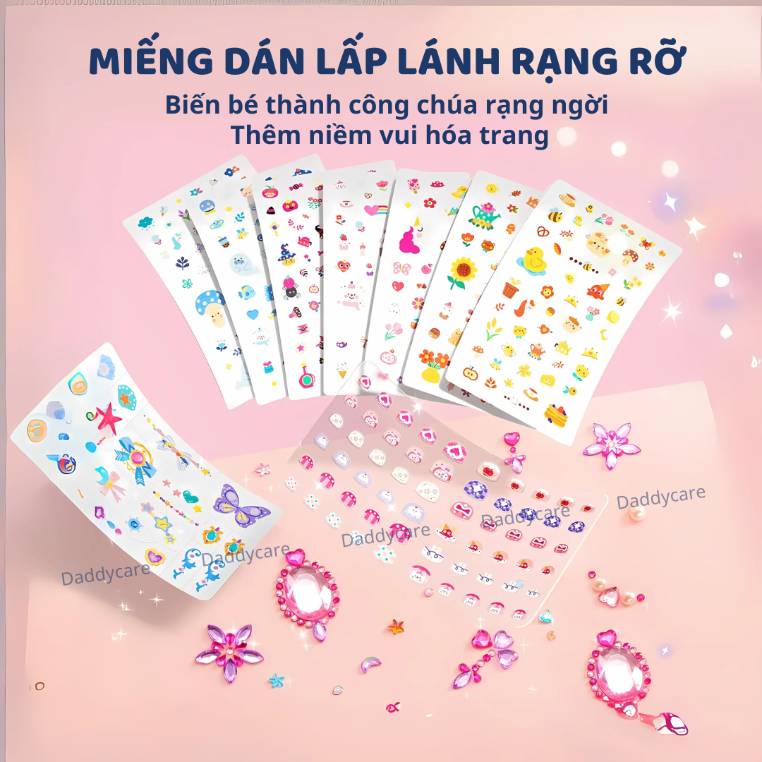 - MIẾNG DÁN LẤP LÁNH: biến bé thành 1 nàng công chúa rạng ngời! Hoàn hảo cho những bé gái yêu thích đồ óng ánh, thêm niềm vui khi hóa trang.