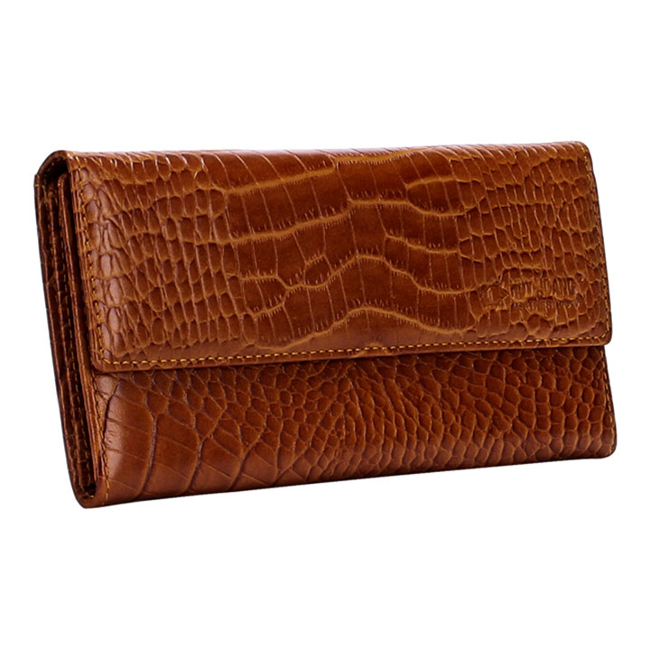 Ví/Bóp nữ da bò Huy Hoàng vân cá sấu lớn 3 gấp màu nâu đỏ 3154