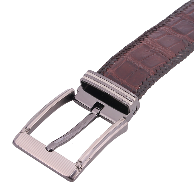 ✨HJ4294-95-96-97 Dây nịt nam da cá sấu Huy Hoàng đan viền bản lớn đầu kim màu Đen, nâu đất, nâu đỏ, vàng bò