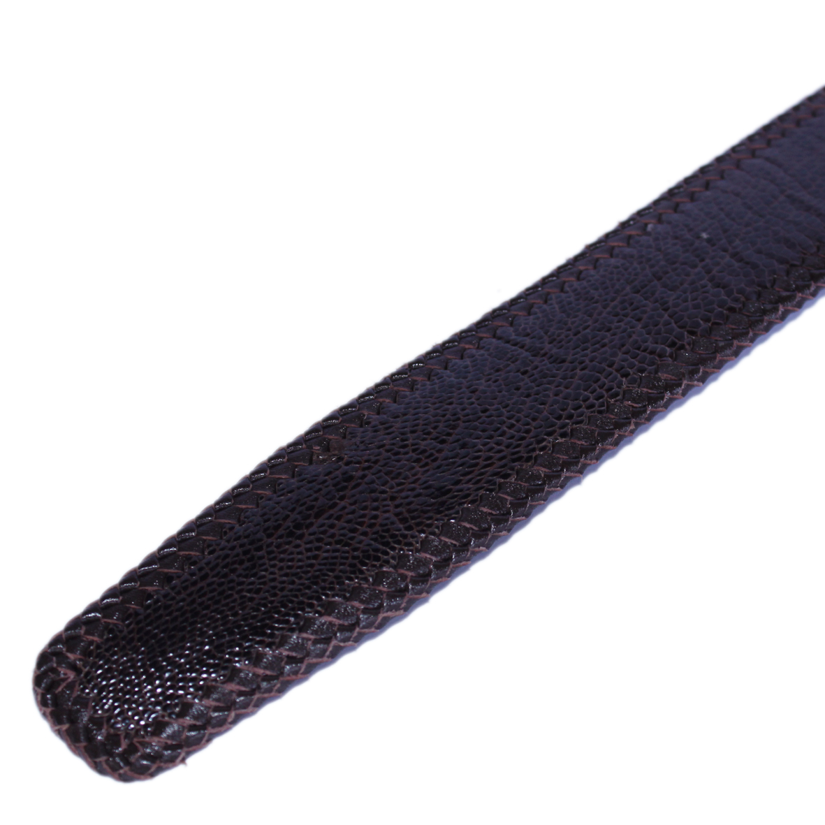 ✨HJ4457-61-65-69 - Dây nịt nam da đà điểu đan viền đầu kim màu đen, nâu đất, vàng bò, nâu đỏ
