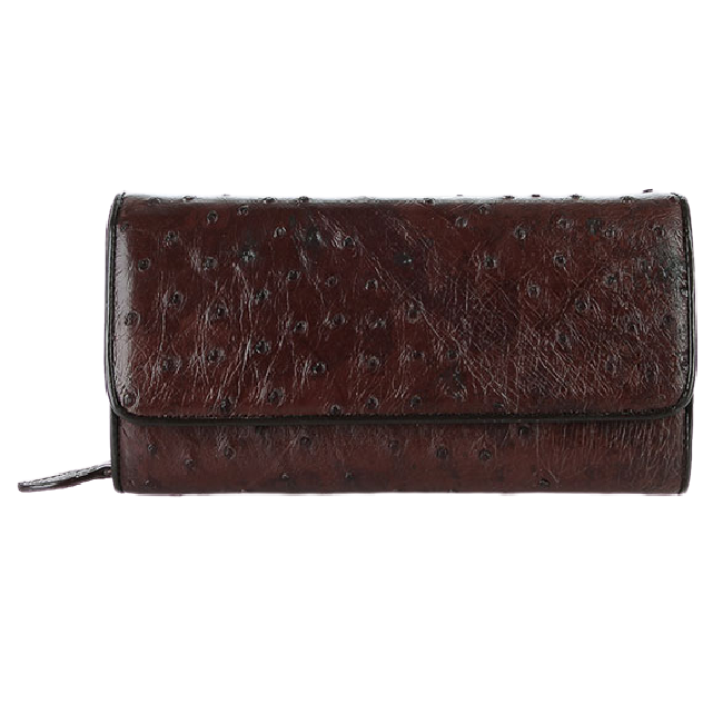 Bóp/Ví da đà điểu Huy Hoàng da bụng kiểu đứng màu nâu đất, nâu đỏ, đen, vàng bò 2408-09-10-18