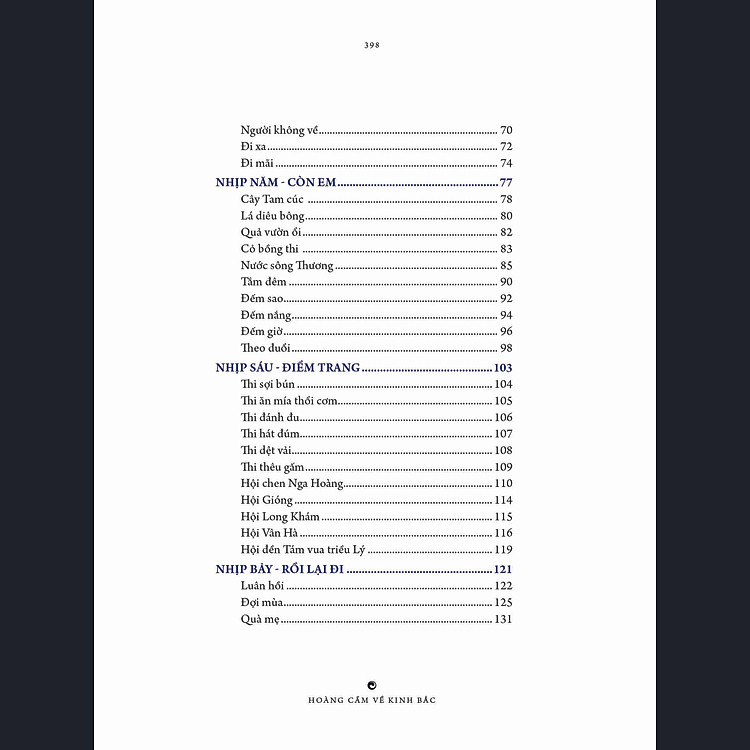 Nương theo tám nhịp: Khấn nguyện - Kiếp trước - Rũ bụi gia phả - Rồi cùng đi tất cả - Còn Em - Điểm trang - Rồi lại đi - Về với ta, ta sẽ có một hành trình xuyên suốt thời không, theo những bước chân phiêu linh của Hoàng Cầm để tuần du miền Kinh Bắc “đầy mê dụ”.
