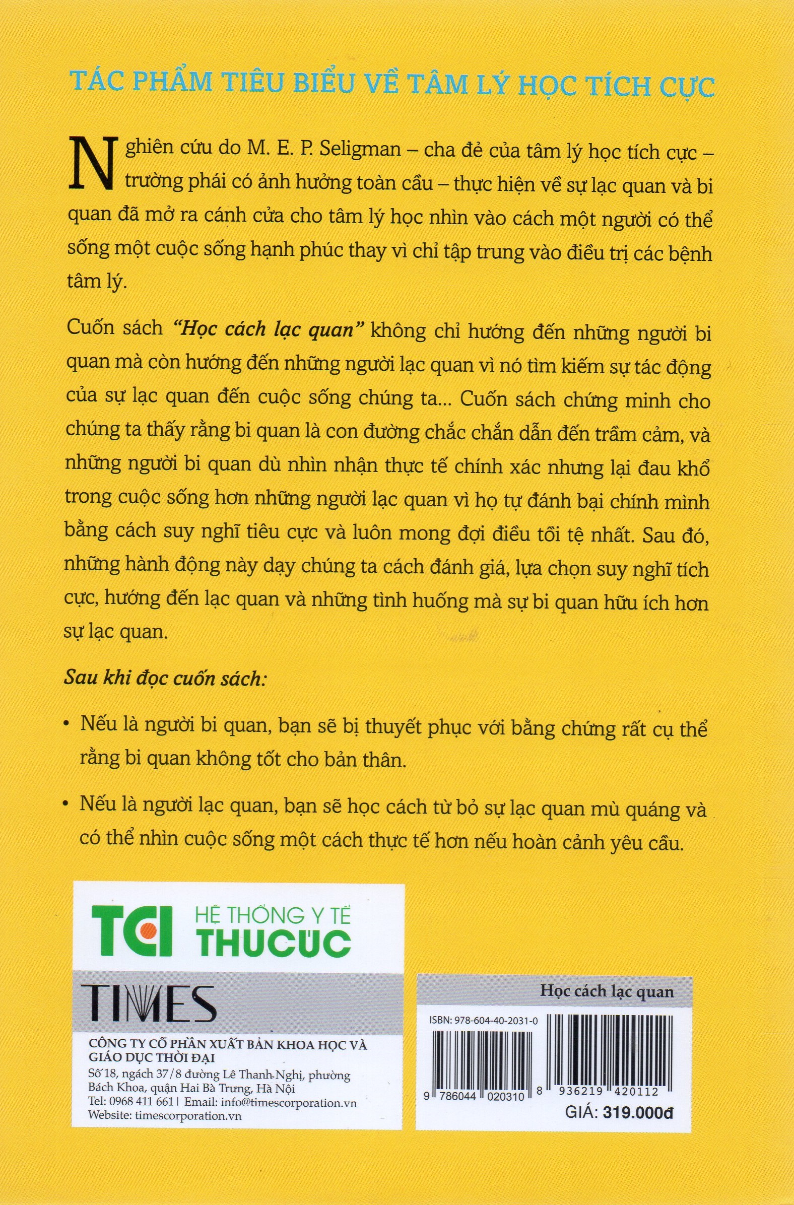 Được biết đến là cha đẻ của ngành khoa học mới về tâm lý học tích cực, Martin EP Seligman đã dựa trên hơn 20 năm nghiên cứu lâm sàng để chứng minh sự lạc quan nâng cao chất lượng cuộc sống như thế nào và làm thế nào mọi người có thể học cách thực hành nó. Đưa ra nhiều kỹ thuật đơn giản, Tiến sĩ Seligman giải thích cách phá bỏ thói quen “Tôi từ bỏ”, phát triển phong cách giải thích mang tính xây dựng hơn để diễn giải hành vi của bạn và trải nghiệm những lợi ích của cuộc đối thoại nội tâm tích cực hơn. Những kỹ năng này có thể giúp phá vỡ trầm cảm, tăng cường hệ thống miễn dịch, phát triển tiềm năng tốt hơn và khiến bạn hạnh phúc hơ