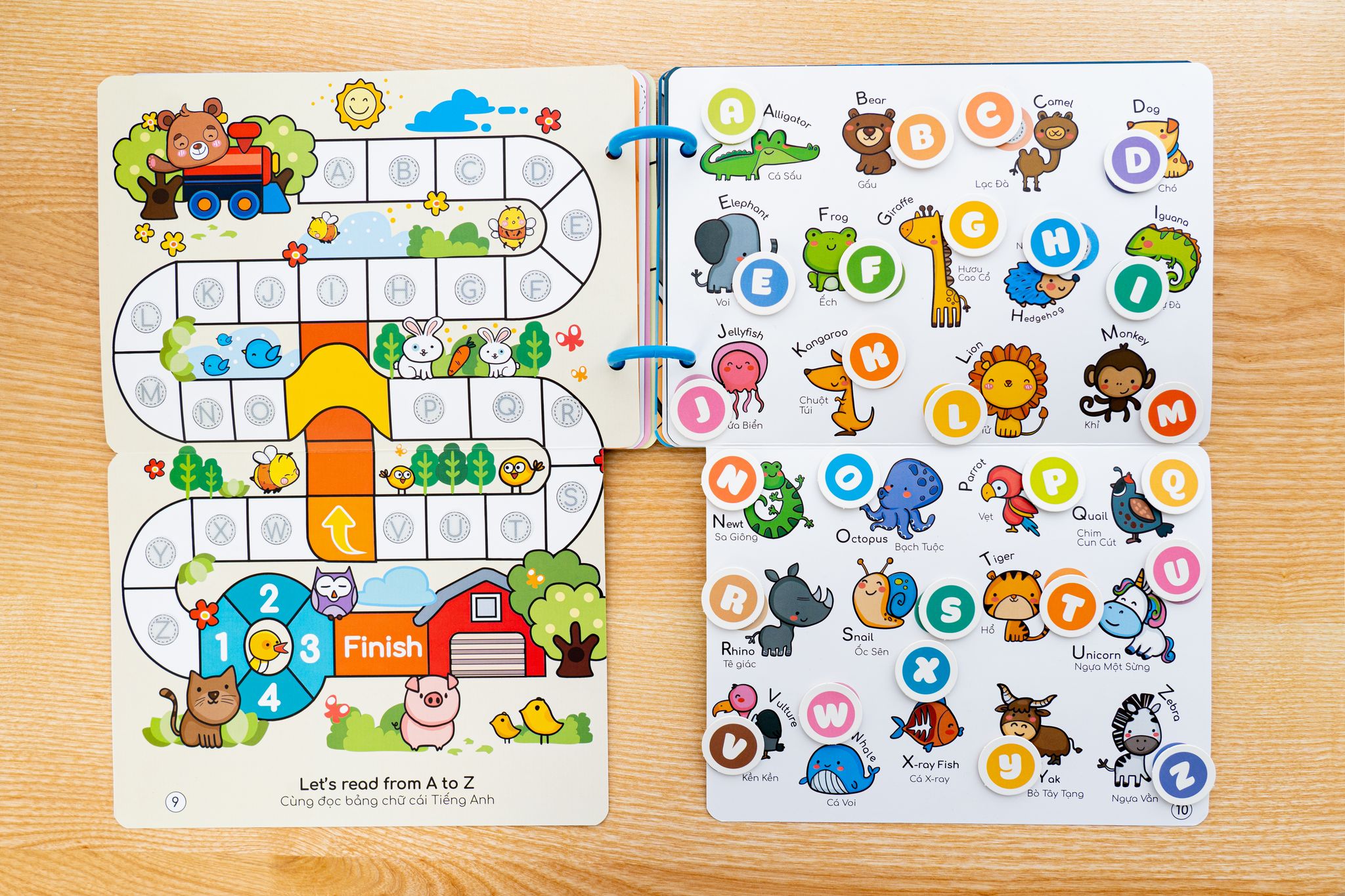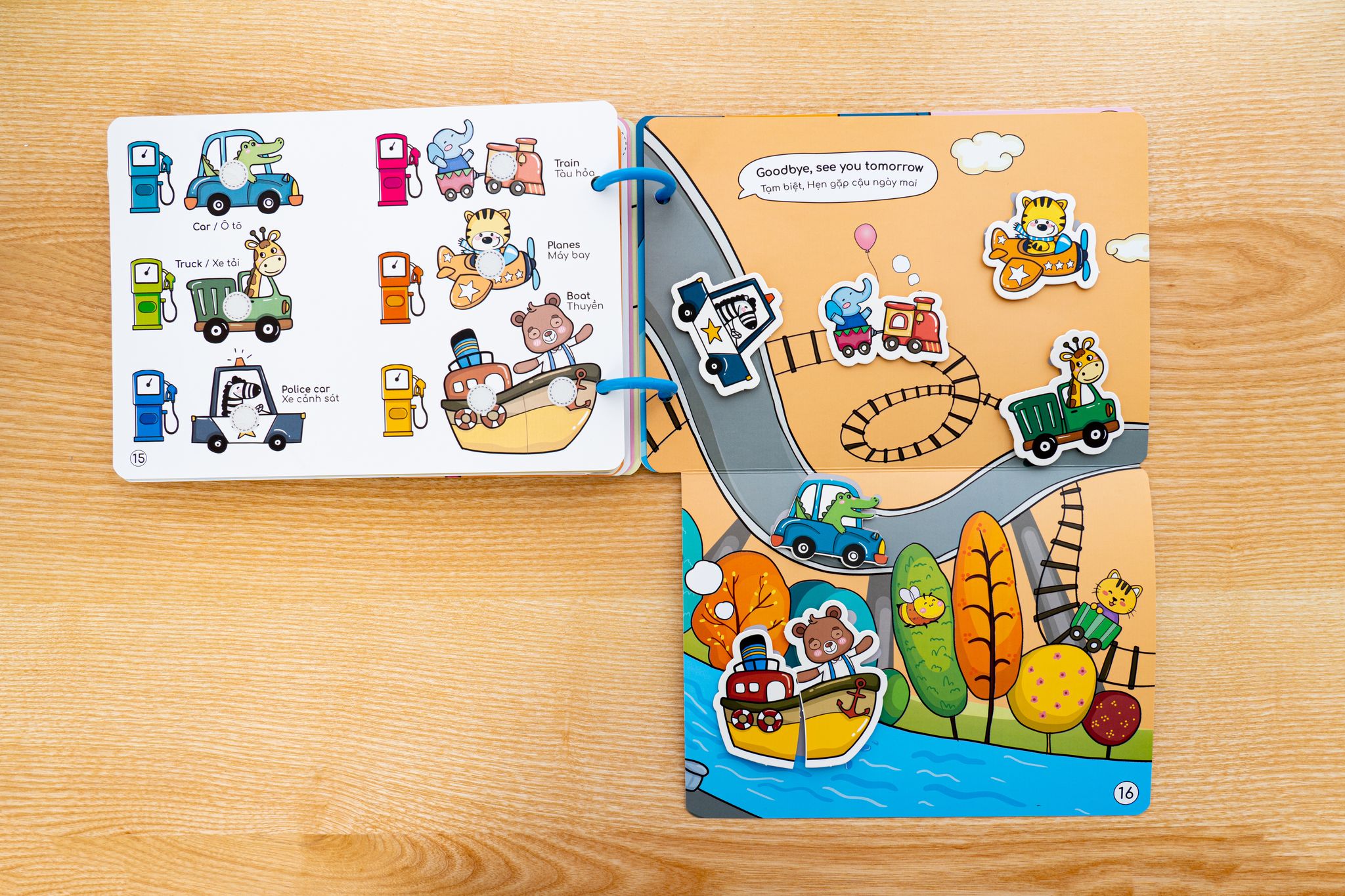 - Song ngữ Anh Việt - Bé sẽ tiếp thu nhanh hơn thông qua việc nhìn mặt chữ và hình ảnh, các hành động bóc từ trang này, dán vào trang kia