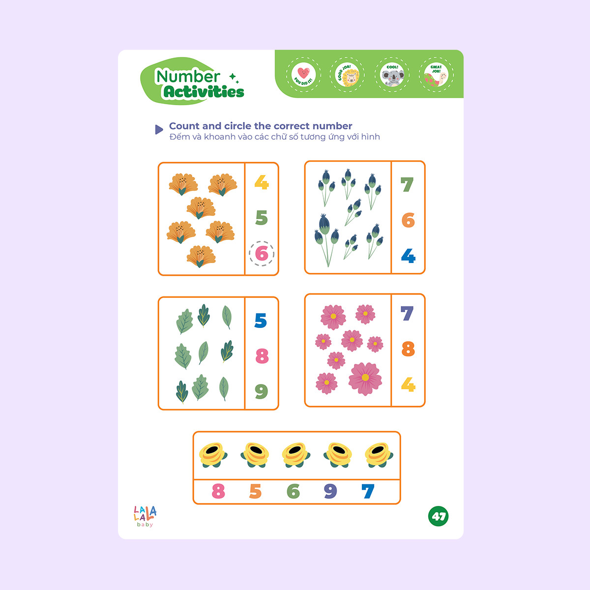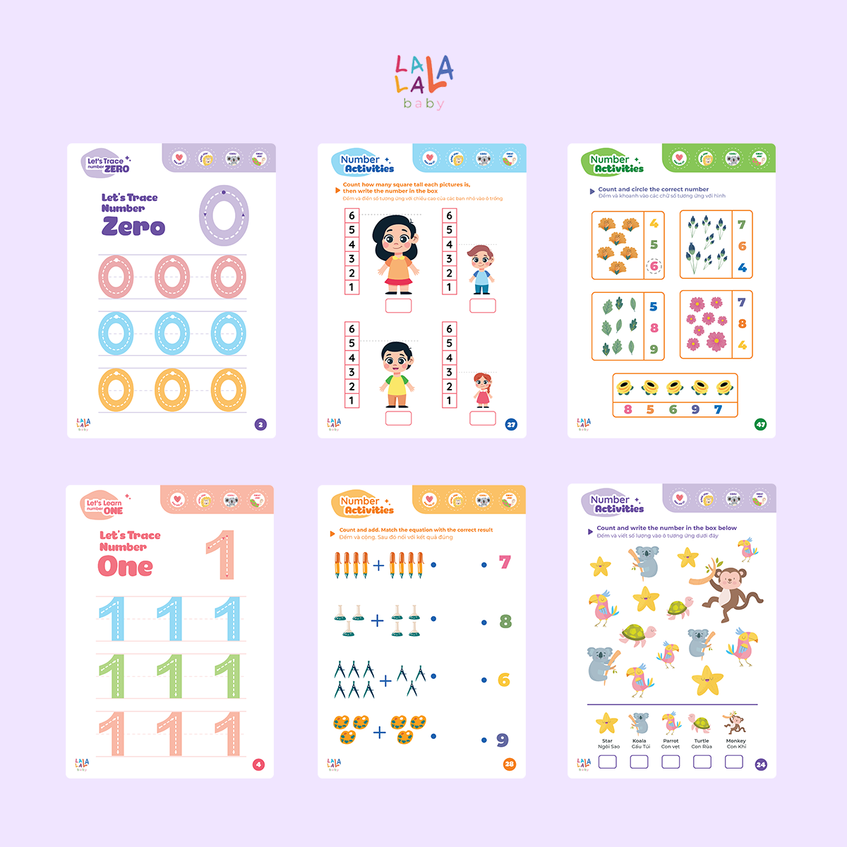 - Cuốn 3 – Stage 3: MATH ME (Toán học) Làm quen với số đếm, phép tính Hoàn thiện các số đếm, phép tính với hình ảnh minh họa sống động có phụ đề Tiếng Anh Bé lựa chọn, phân biệt, Tìm kiếm các chữ số