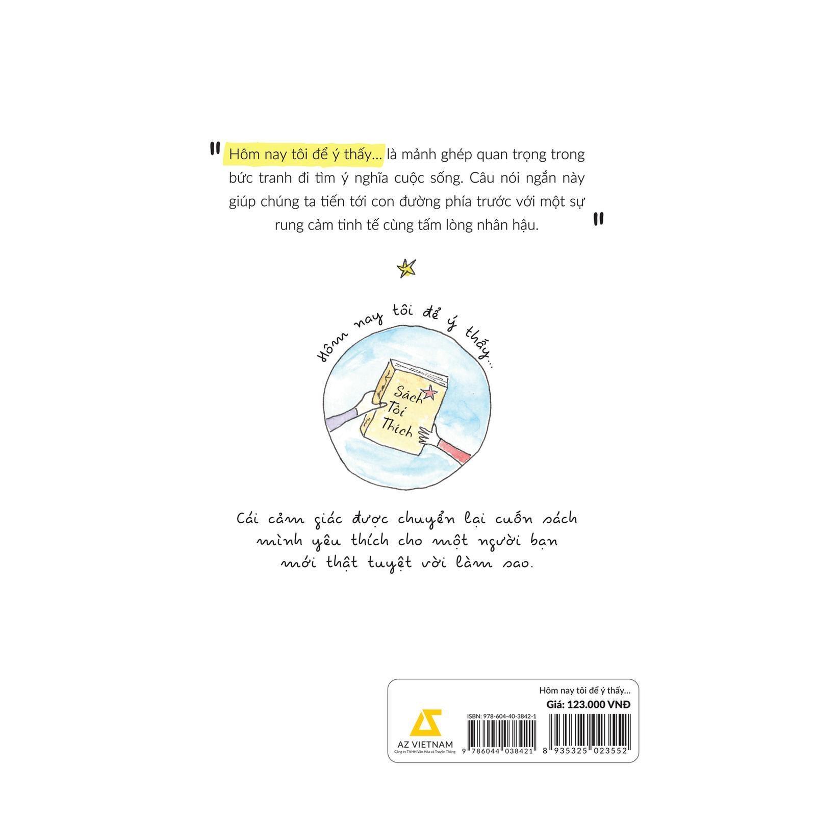 Với 6 từ khóa và hình vẽ minh họa sinh động, “Hôm nay tôi để ý thấy…” đưa đến cách tiếp cận chánh niệm đơn giản mà bất cứ ai cũng thực hiện được. Qua cuốn sách này, bạn sẽ khám phá ra một số khoảnh khắc ngọt ngào, ngớ ngẩn, hài hước, lộn xộn “rất đời” đã tạo nên cuộc sống của chúng ta. Dưới đây là những gì bạn nhận được khi thực hành phương pháp “Hôm nay tôi để ý thấy…” theo gợi ý trong sách: