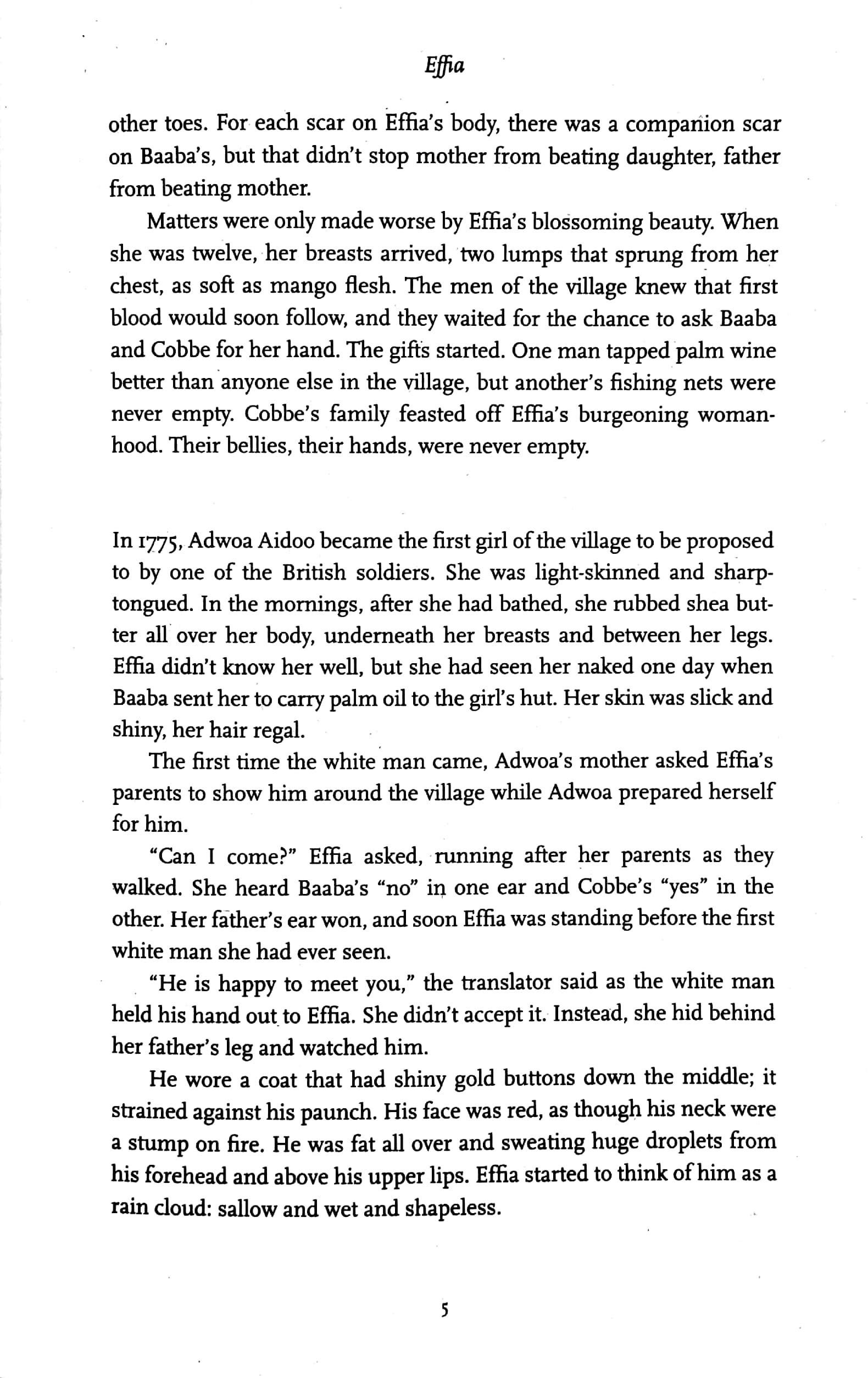 Effia and Esi are born into different villages in eighteenth-century Ghana. Effia is married off to an Englishman and lives in comfort in the palatial rooms of Cape Coast Castle. Unbeknownst to Effia, her sister, Esi, is imprisoned beneath her in the castle’s dungeons, sold with thousands of others into the Gold Coast’s booming slave trade, and shipped off to America, where her children and grandchildren will be raised in slavery. One thread of Homegoing follows Effia’s descendants through centuries of warfare in Ghana, as the Fante and Asante nations wrestle with the slave trade and British colonization. The other thread follows Esi and her children into America. From the plantations of the South to the Civil War and the Great Migration, from the coal mines of Pratt City, Alabama, to the jazz clubs and dope houses of twentieth-century Harlem, right up through the present day, Homegoing makes history visceral, and captures, with singular and stunning immediacy, how the memory of captivity came to be inscribed in the soul of a nation.